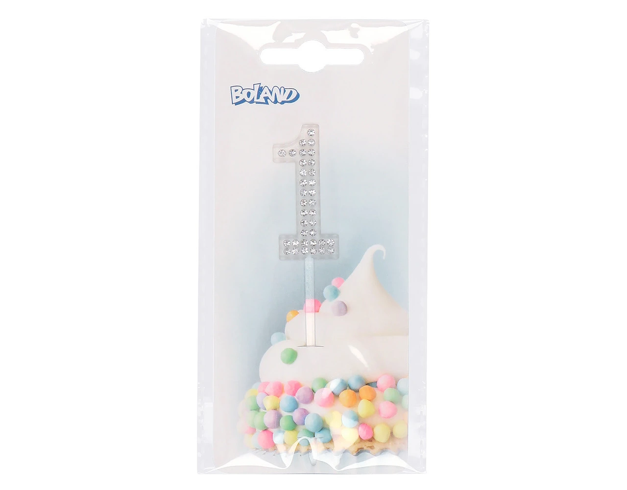 Diamanten taarttopper ‘1’ 2.5 x 10.5cm