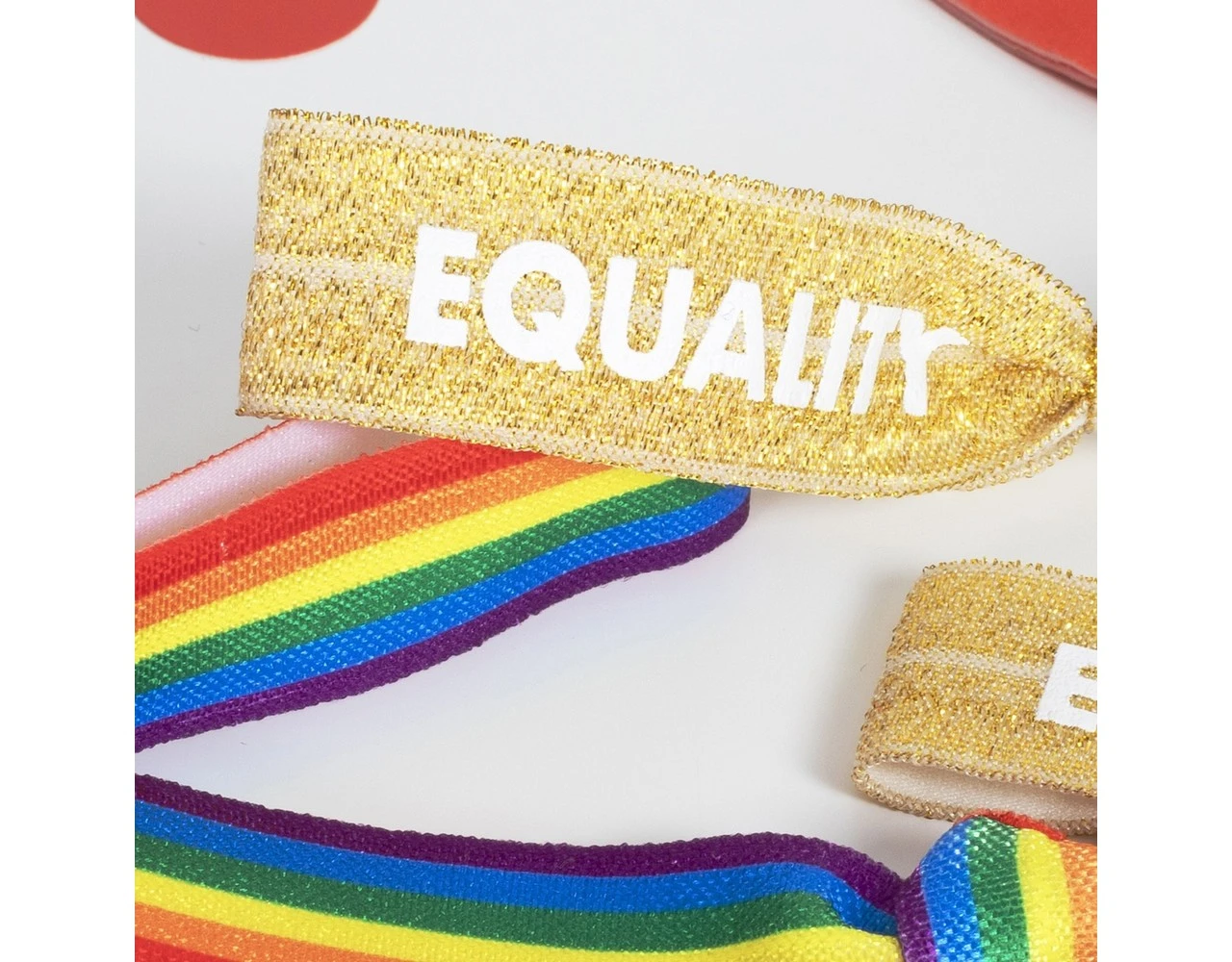 Inhoud: 3 regenboog armbandjes, 2 gouden armbandjes