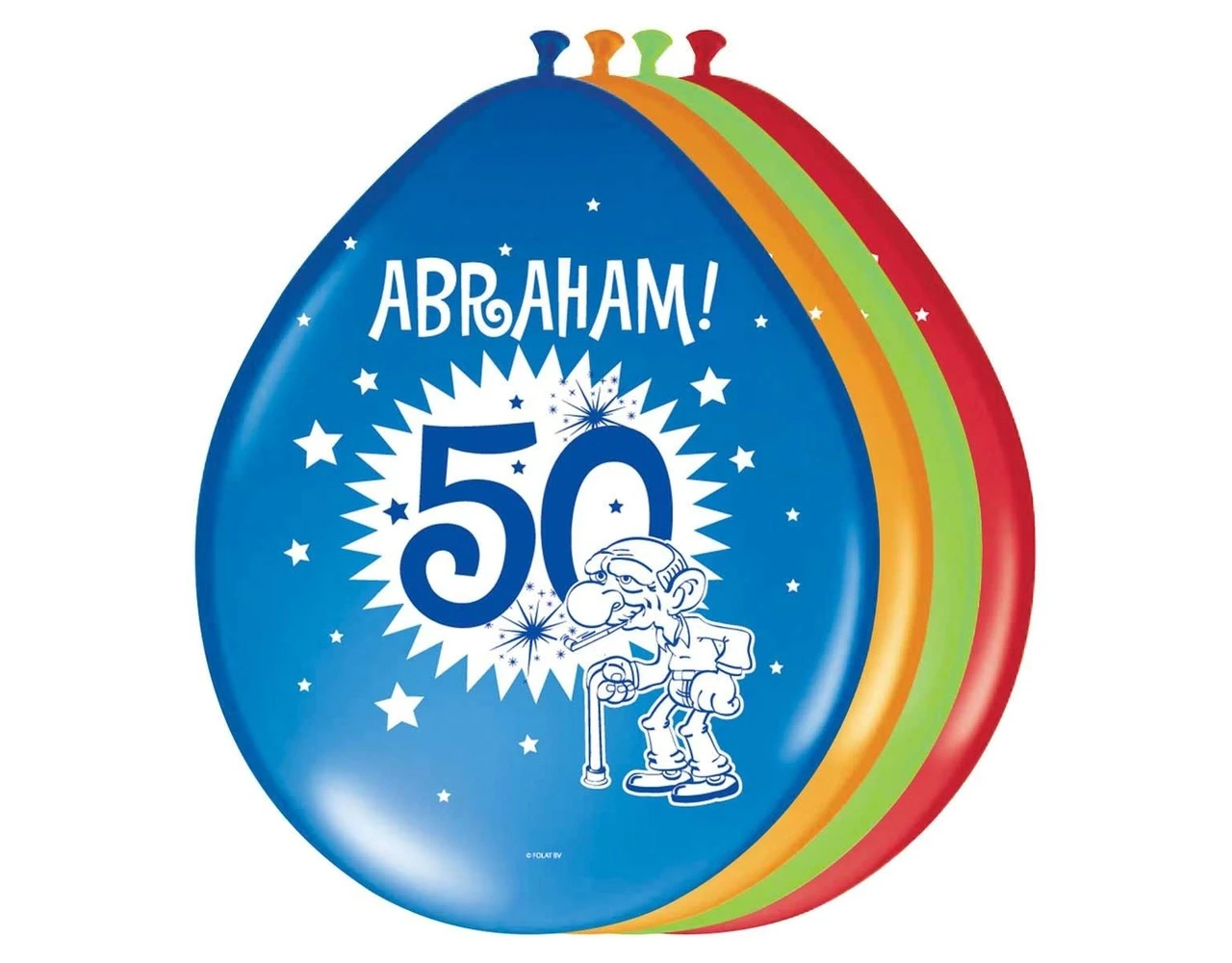 50 Jaar Abraham Knalfeest Ballonnen 30 cm – 8 stuks. Inhoud: 8 latex ballonnen. Bijvoorbeeld te gebruiken tijdens de volgende feestgelegenheid/feestgelegenheden: Abraham, verjaardag. Elke ballon is 12 inch/30 cm. Het artikel is gemaakt van latex.