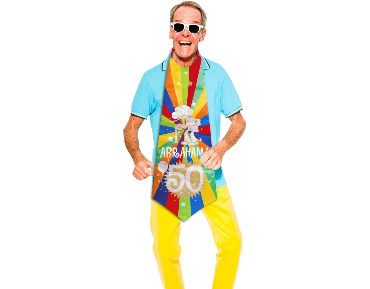 50 Jaar Abraham Knalfeest Stropdas XXL. Inhoud: 1 stropdas. Kleur: Meerkleurig. Leuk om deze stropdas te dragen tijdens Verjaardag. Deze stropdas is 20 cm lang. Deze stropdas is gemaakt van polyester.