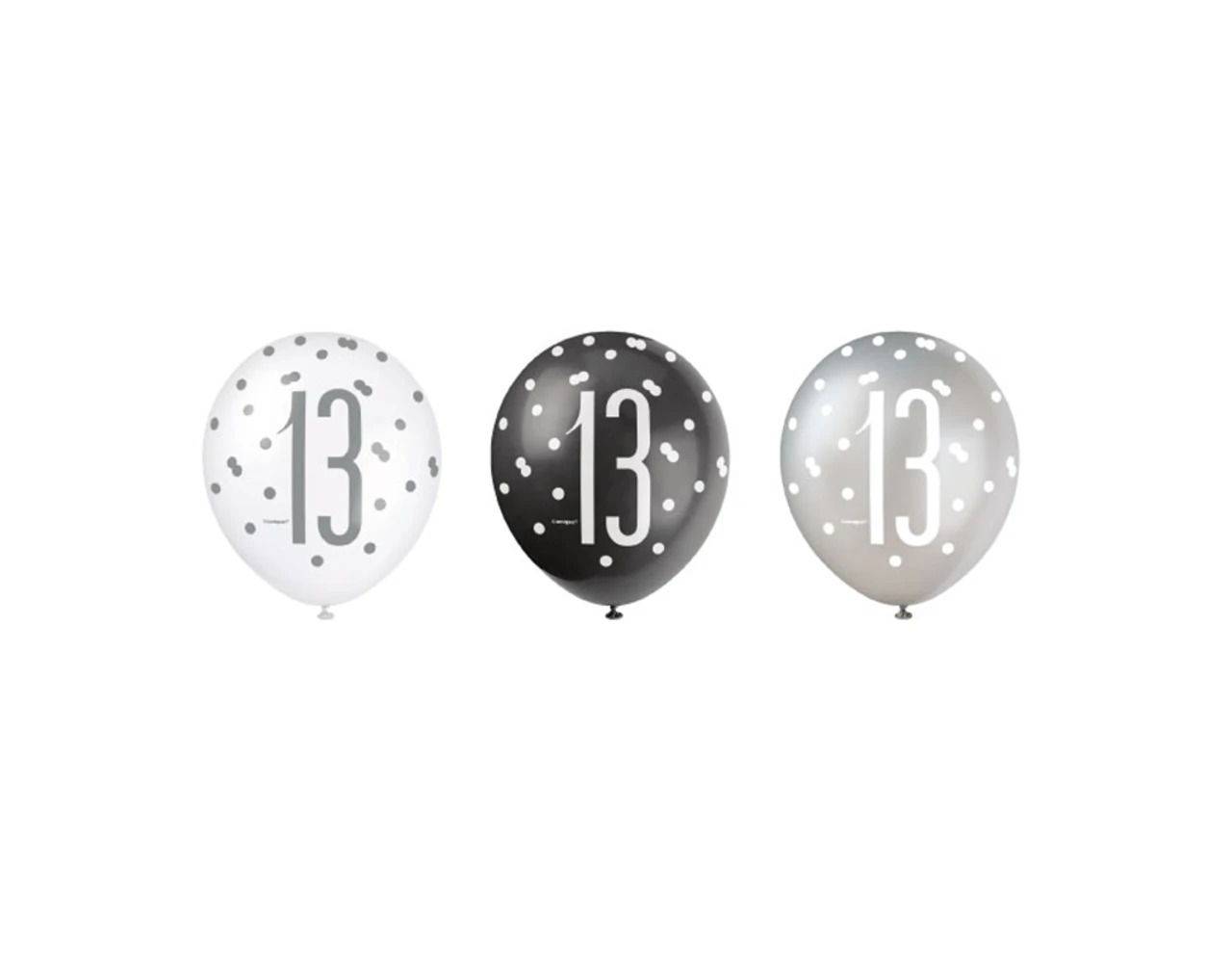 Verpakkingsinhoud: Ballonnen 13 Jaar Stippen Zwart 30cm 6st