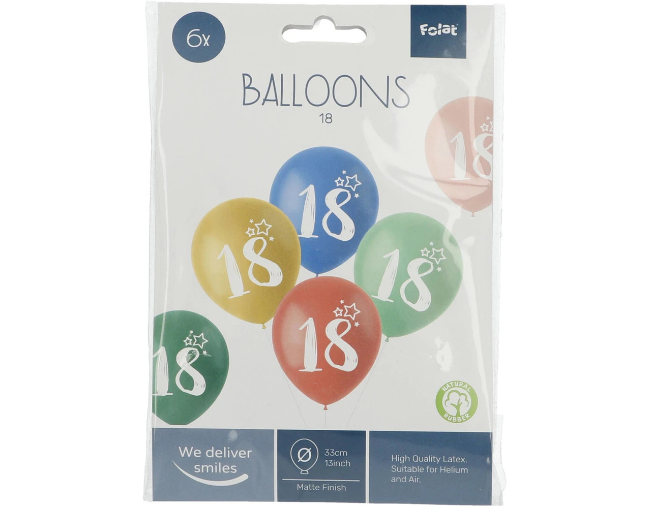 Ballonnen Retro 18 Jaar Meerkleurig 33cm – 6 stuks. Inhoud: 6 latex ballonnen. Kleur: Meerkleurig. Bijvoorbeeld te gebruiken tijdens de volgende feestgelegenheid/feestgelegenheden: Verjaardag. Elke ballon is 13 inch/33 cm. Het artikel is gemaakt van latex.