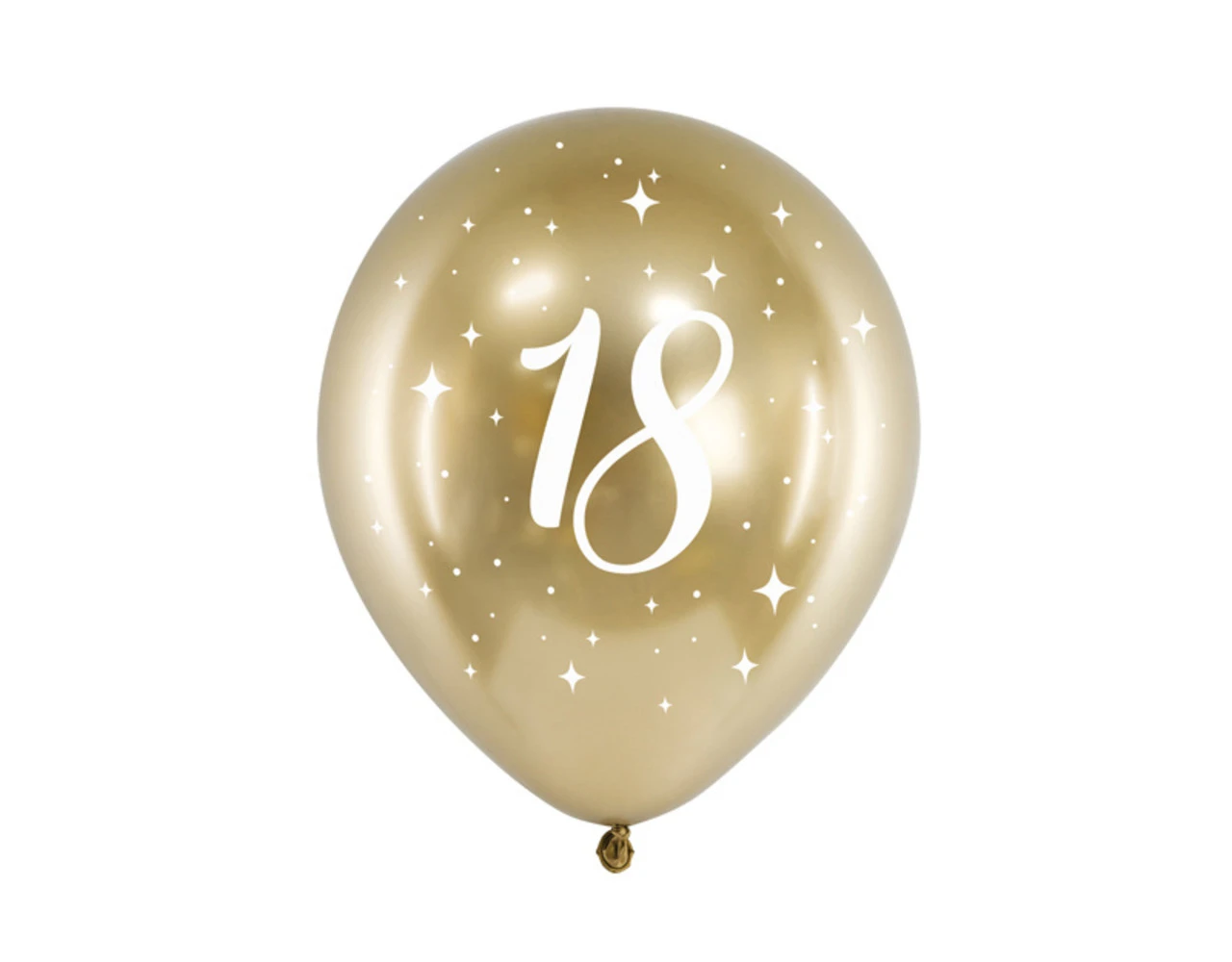 Glanzende ballonnen in goudkleur met witte opdruk 18, diameter 30 cm.
