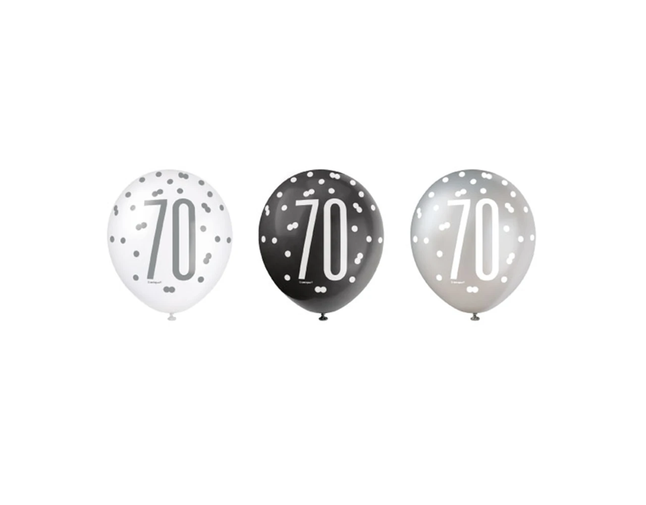 Verpakkingsinhoud: Ballonnen 70 Jaar Stippen Zwart 30cm 6st