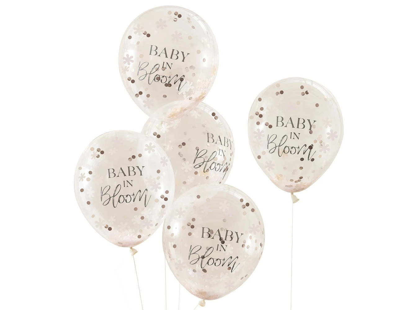 Deze prachtige roségouden bloemenconfettiballonnen zijn de perfecte decoratie voor een babyshower! Met subtiele bloemenconfetti geven ze je locatie direct een verfijnde touch.
