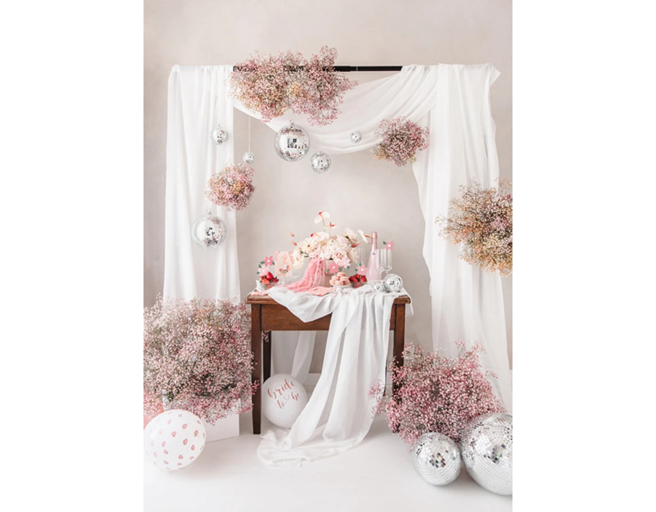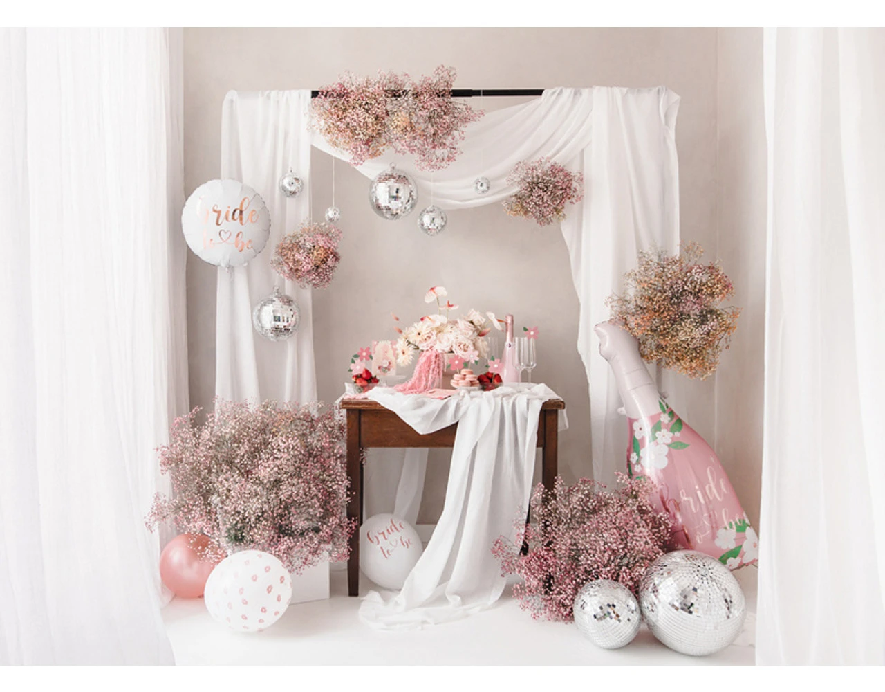 Sterke ballonnen Bride to be, set bevat 6 ballonnen (3 wit met opdruk, 1 Mettalic Rose Gold kleur, 1 Pastel Pale Pink kleur), diameter ca 30 cm.