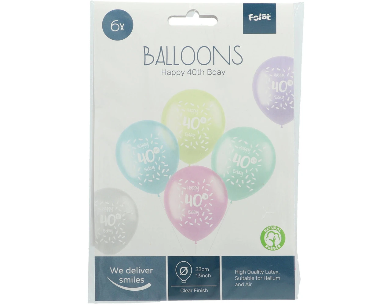 Ballonnen Pastel 40 Jaar Meerkleurig 33cm – 6 stuks. Inhoud: 6 latex ballonnen. Kleur: Meerkleurig. Bijvoorbeeld te gebruiken tijdens de volgende feestgelegenheid/feestgelegenheden: Verjaardag. Elke ballon is 13 inch/33 cm. Het artikel is gemaakt van latex.