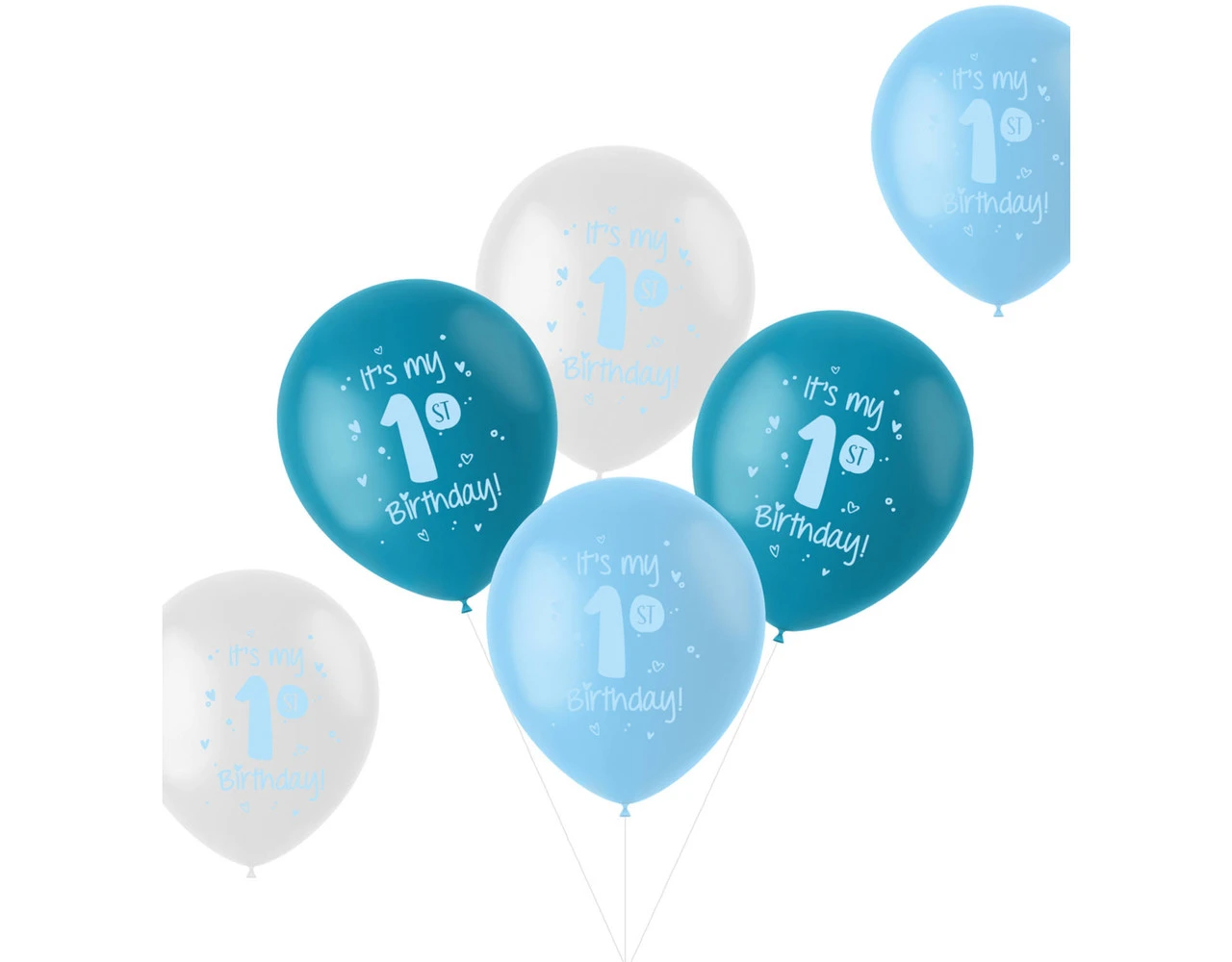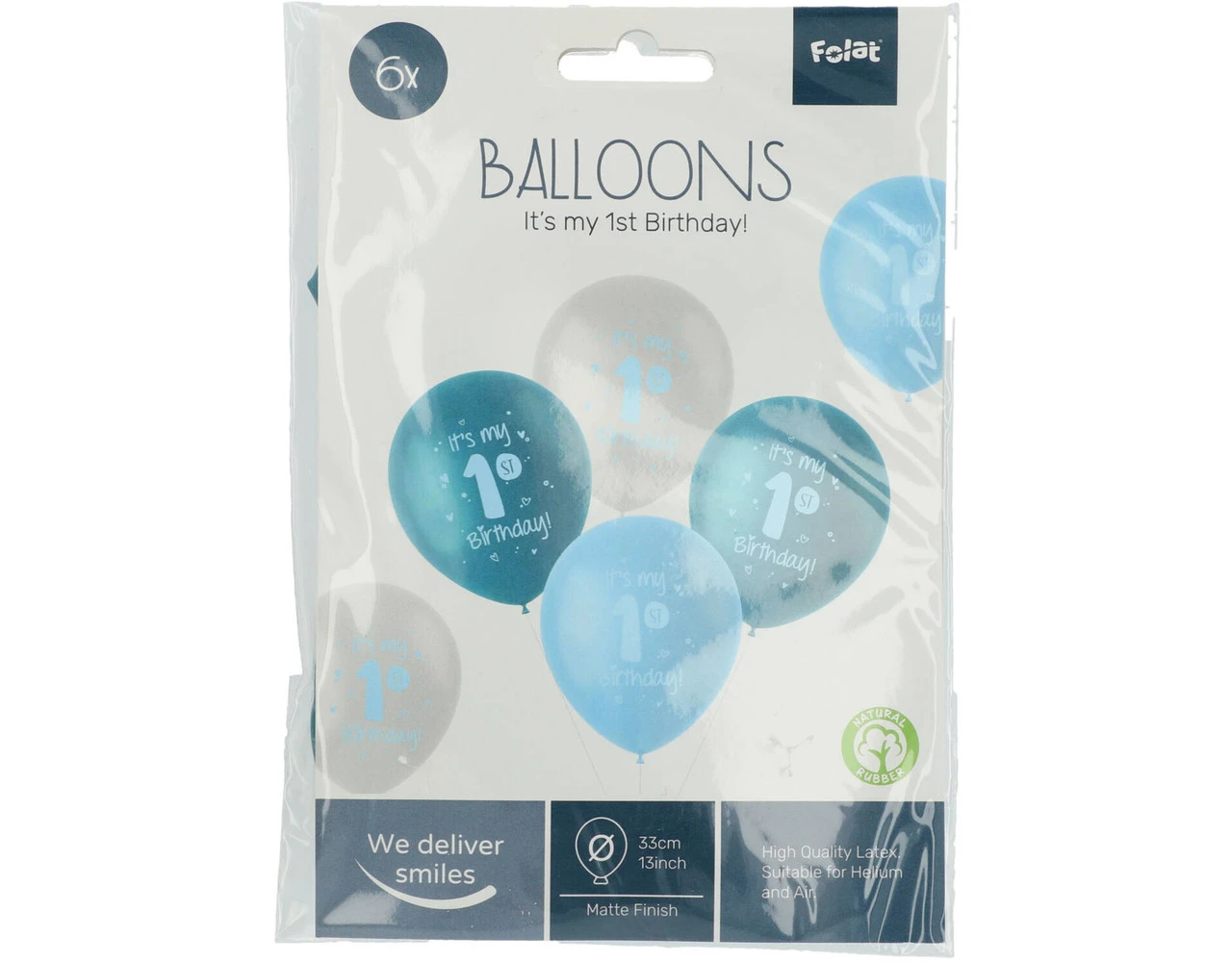 Ballonnen ‘It is my 1st Birthday!’ Blauw 33cm – 6 stuks. Inhoud: 6 latex ballonnen. Kleur: Blauw. Bijvoorbeeld te gebruiken tijdens de volgende feestgelegenheid/feestgelegenheden: Kinderfeestje. Elke ballon is 13 inch/33 cm. Het artikel is gemaakt van latex.