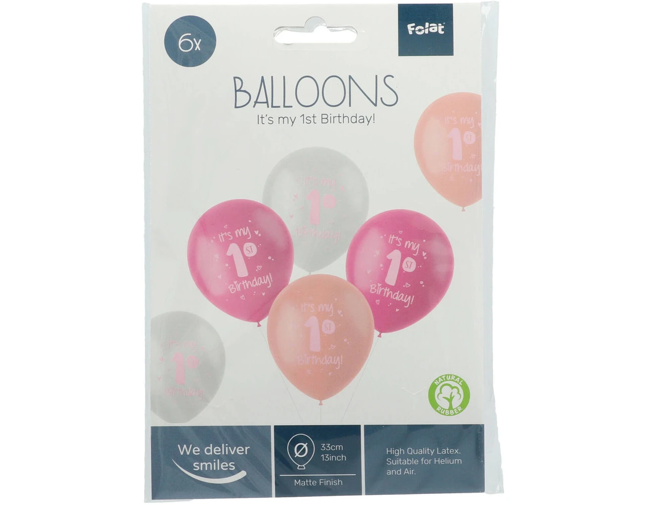 Ballonnen ‘It is my 1st Birthday!’ Roze 33cm – 6 stuks. Inhoud: 6 latex ballonnen. Kleur: Roze. Bijvoorbeeld te gebruiken tijdens de volgende feestgelegenheid/feestgelegenheden: Kinderfeestje. Elke ballon is 13 inch/33 cm. Het artikel is gemaakt van latex.