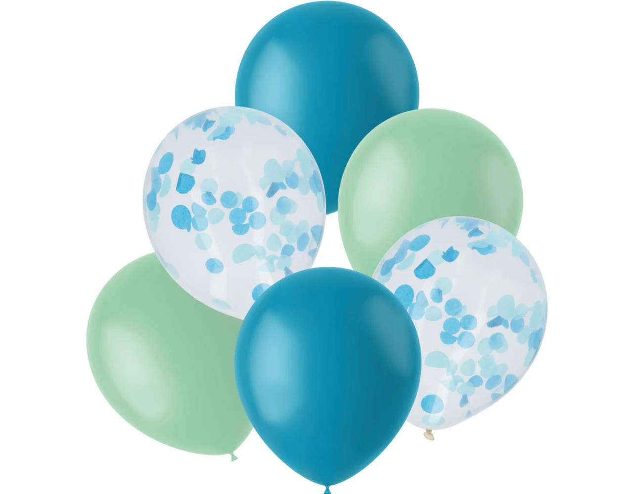 Ballonnen Mix Blauw 30cm – 6 stuks. Inhoud: 6 latex ballonnen, waarvan 4 mat gekleurd en 2 confetti ballonnen. Kleur: Blauw. Bijvoorbeeld te gebruiken tijdens de volgende feestgelegenheid/feestgelegenheden: Verjaardag, Kinderfeestje en Geboorte Jongen. Elke ballon is 12 inch/30 cm. Het artikel is gemaakt van latex. De confetti is gemaakt van papier.