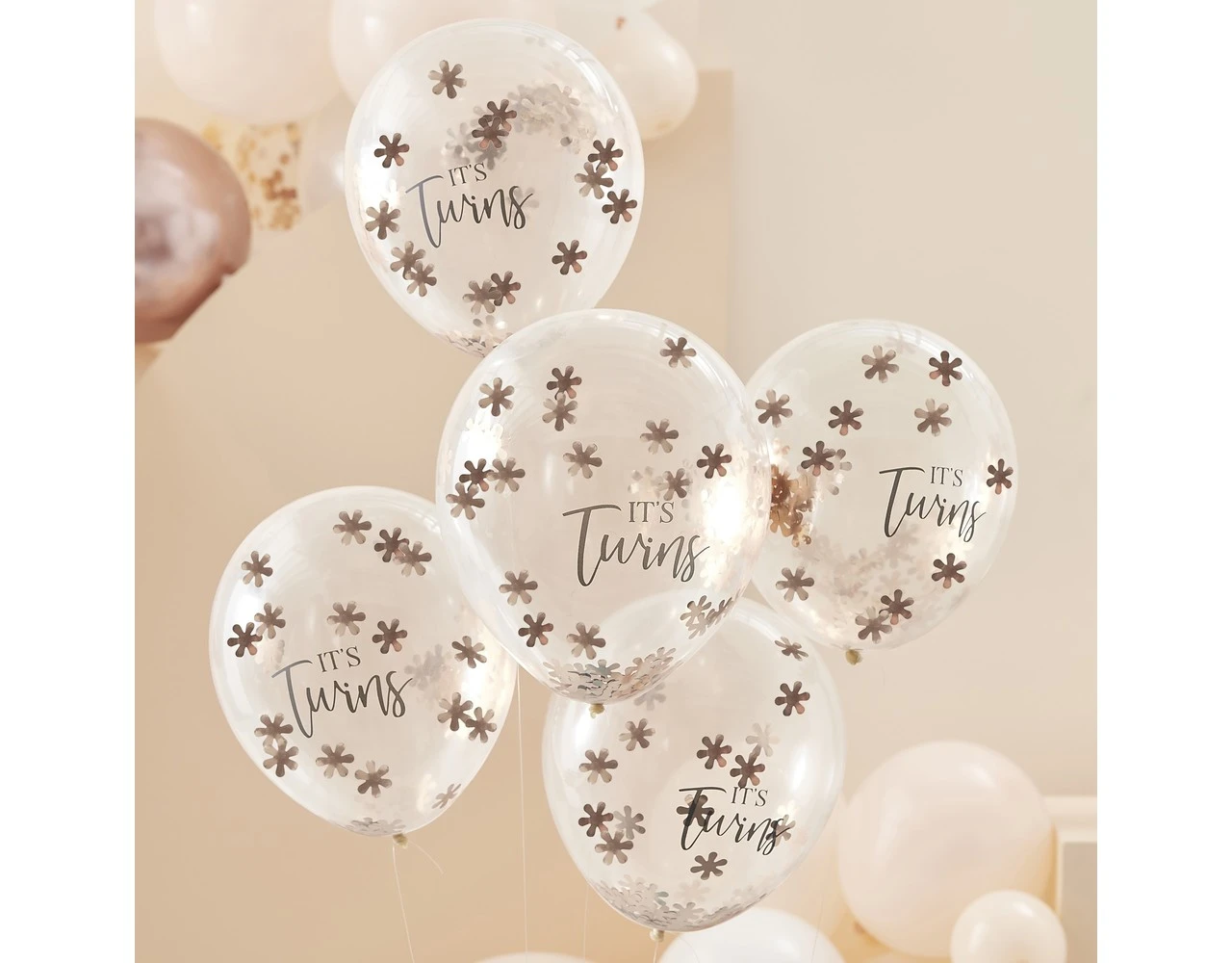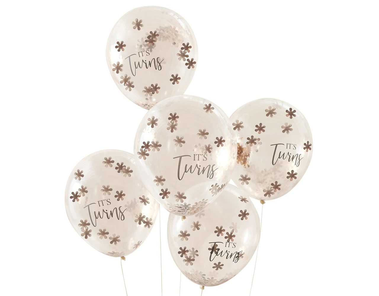 Het is een tweeling! Onze roségouden ‘It’s Twins’-confettiballonnen met bloemen zijn de perfecte decoratie voor een babyshower om je spannende nieuws te vieren! Eveneens een geweldige manier om je ongelooflijke nieuws aan al je vrienden en familie aan te kondigen.
