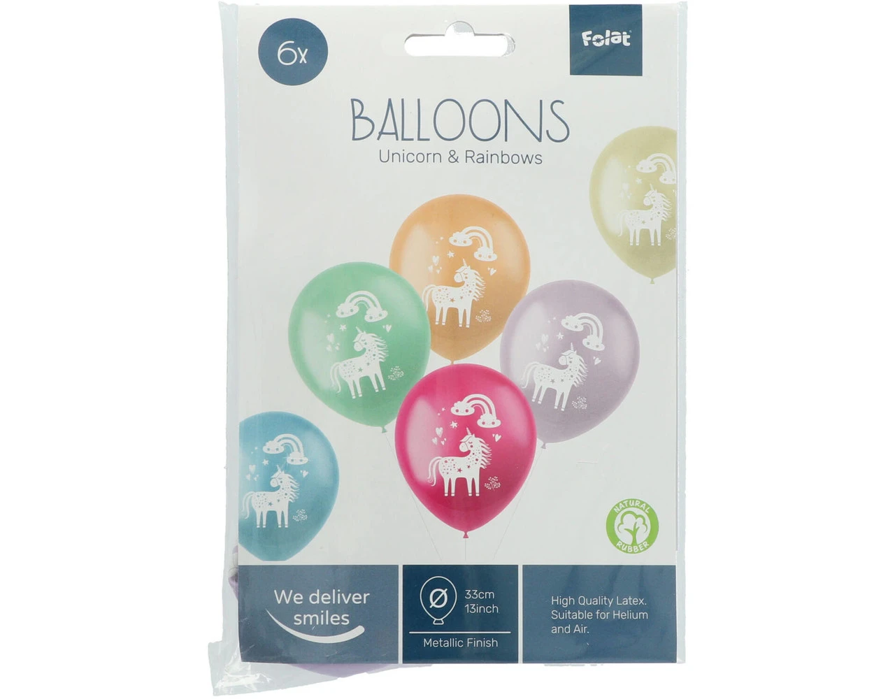 Ballonnen Unicorns & Rainbows Meerkleurig 33cm – 6 stuks. Inhoud: 6 latex ballonnen. Kleur: Meerkleurig. Bijvoorbeeld te gebruiken tijdens de volgende feestgelegenheid/feestgelegenheden: Kinderfeestje. Elke ballon is 13 inch/33 cm. Het artikel is gemaakt van latex.