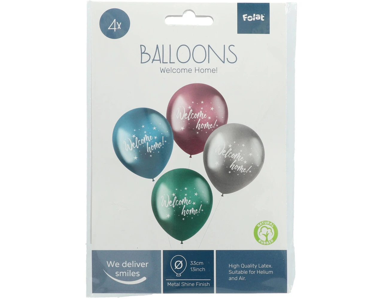 Ballonnen Shimmer ‘Welcome Home!’ Electrum 33cm – 4 stuks. Inhoud: 4 latex ballonnen. Kleur: Meerkleurig. Bijvoorbeeld te gebruiken tijdens de volgende feestgelegenheid/feestgelegenheden: Welkom Thuis. Elke ballon is 13 inch/33 cm. Het artikel is gemaakt van latex.