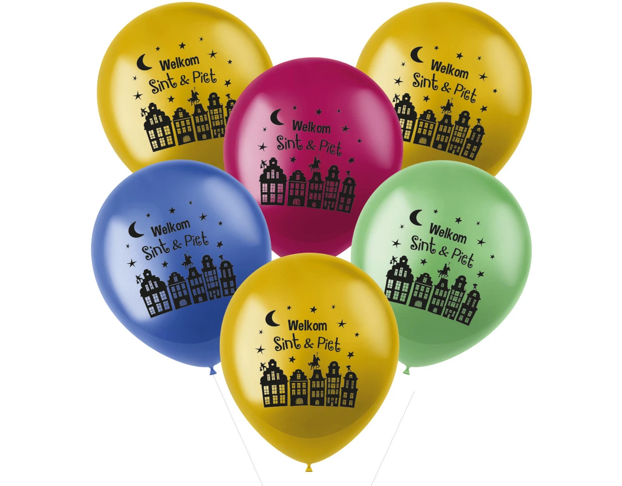 Ballonnen ‘Welkom Sint & Piet’ Meerkleurig – 6 stuks. Inhoud: 6 latex ballonnen. Kleur: Meerkleurig. Bijvoorbeeld te gebruiken tijdens de volgende feestgelegenheid/feestgelegenheden: Sinterklaas. Elke ballon is 13 inch/33 cm. Het artikel is gemaakt van latex.