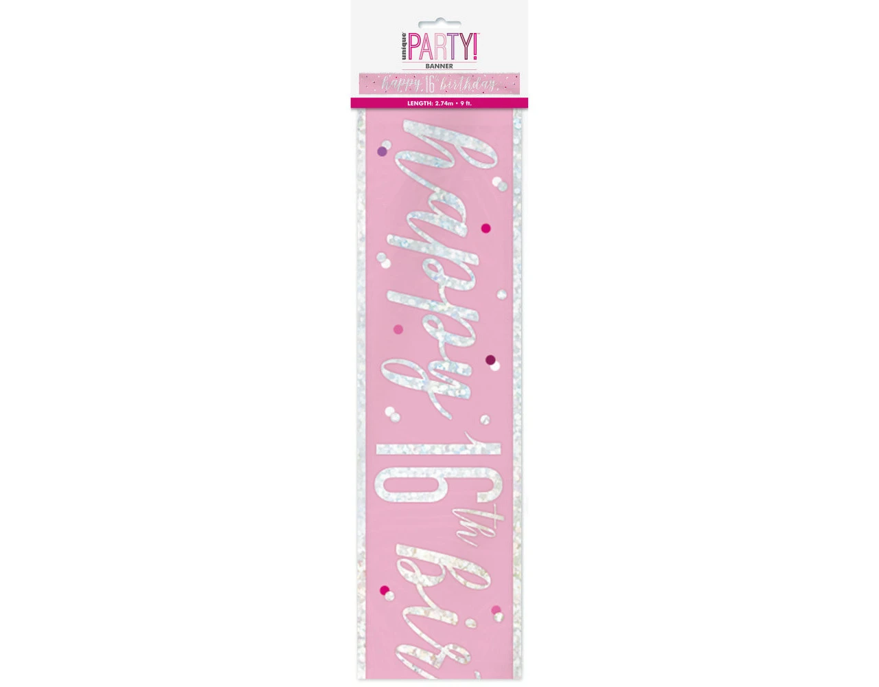Verpakkingsinhoud: Banner 16 Jaar Roze 2,74m
