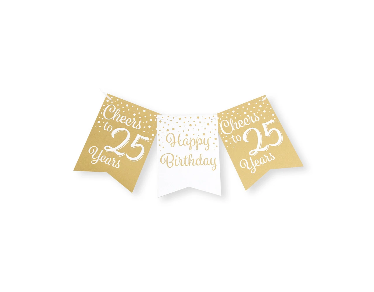 Verpakkingsinhoud: Party vlagbanner goud / wit – 25