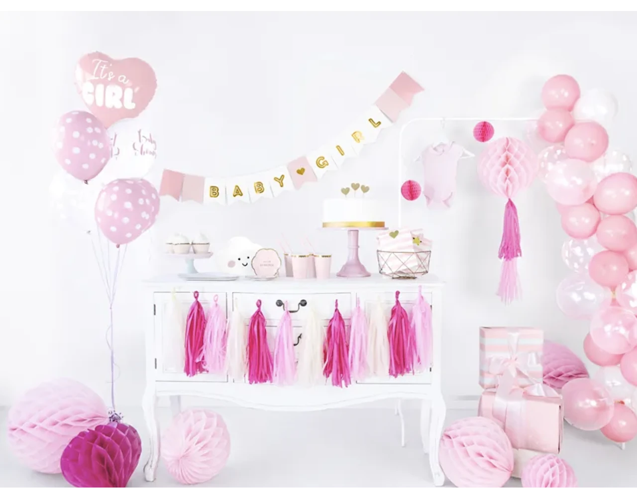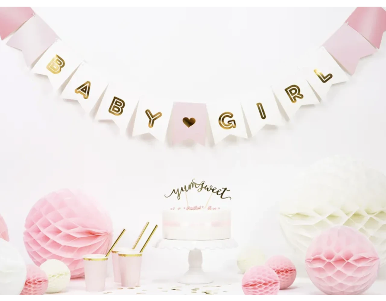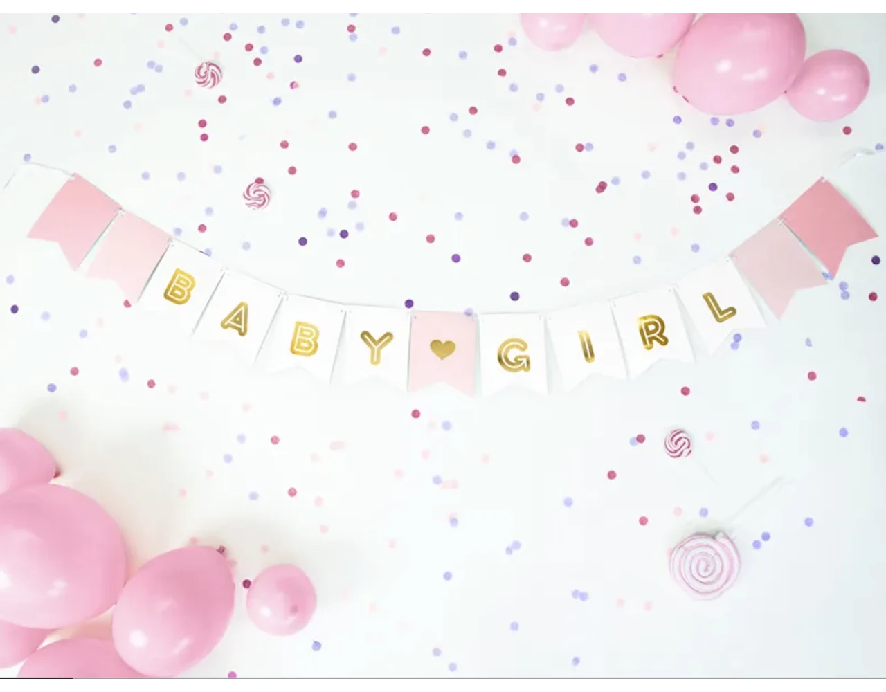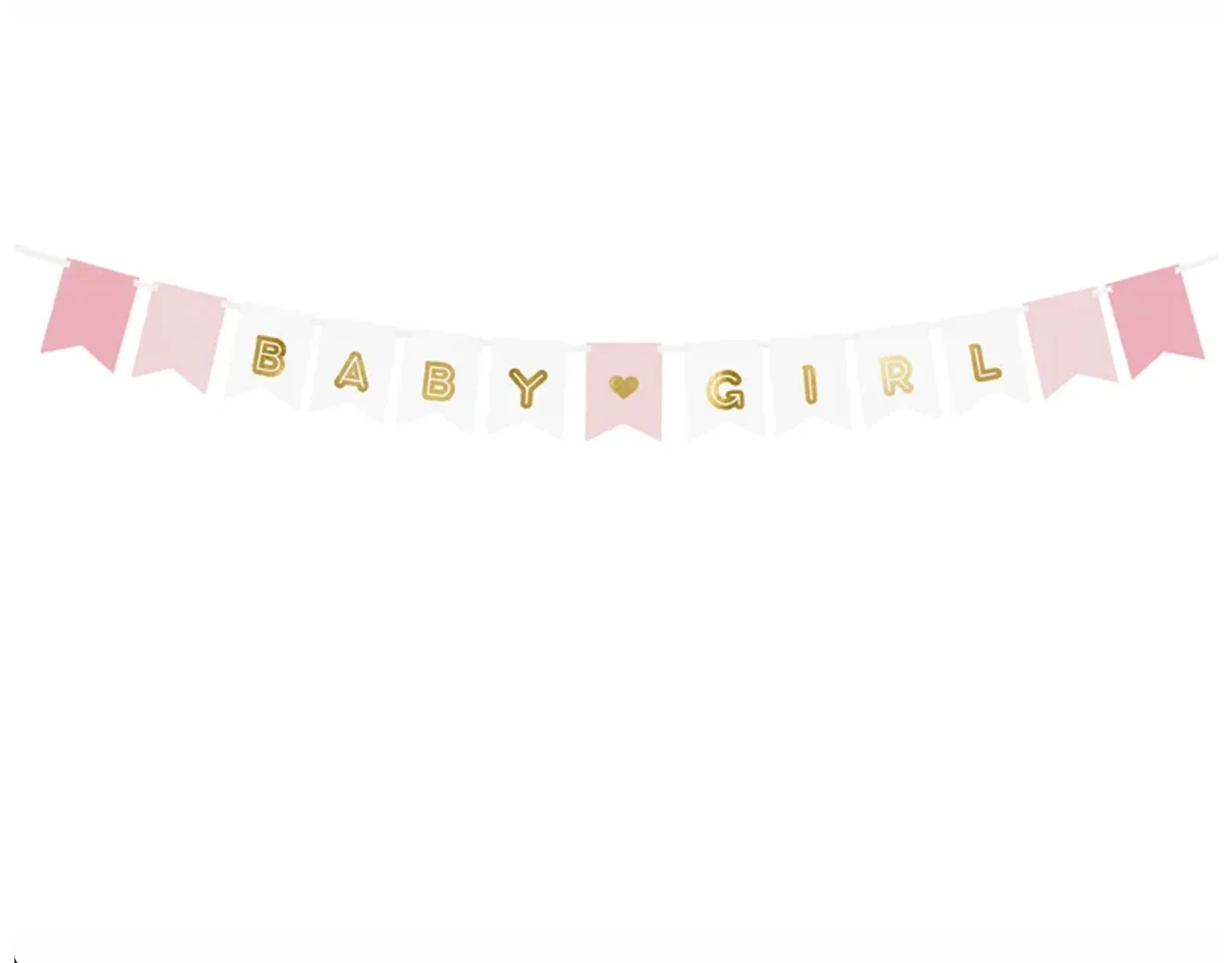 Banier Baby Girl, mix van kleuren met gouden opschrift, doe het zelf, set bevat letters en ca. 2,5 m wit lint, maten na montage: hoogte ca. 15 cm, lengte ca. 175 cm.