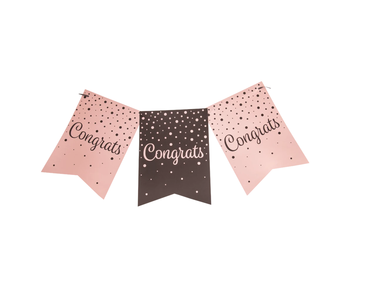 Deze goud witte vlaggetjes geven jouw feestje extra glamour, en mogen niet ontbreken op een Rose/Black party!