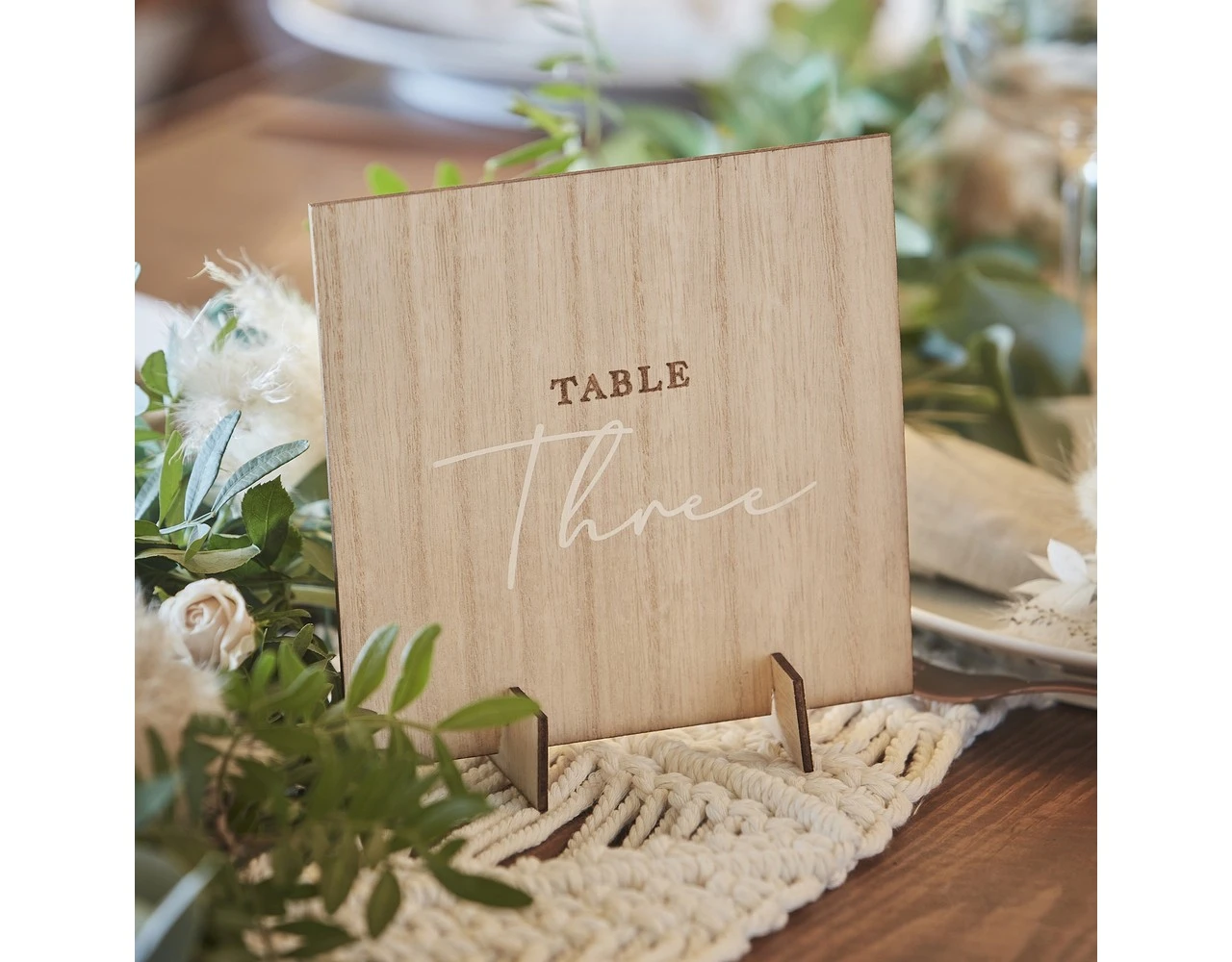 Met deze prachtige houten trouwtafelnummers kunnen uw gasten gemakkelijk hun tafel vinden.