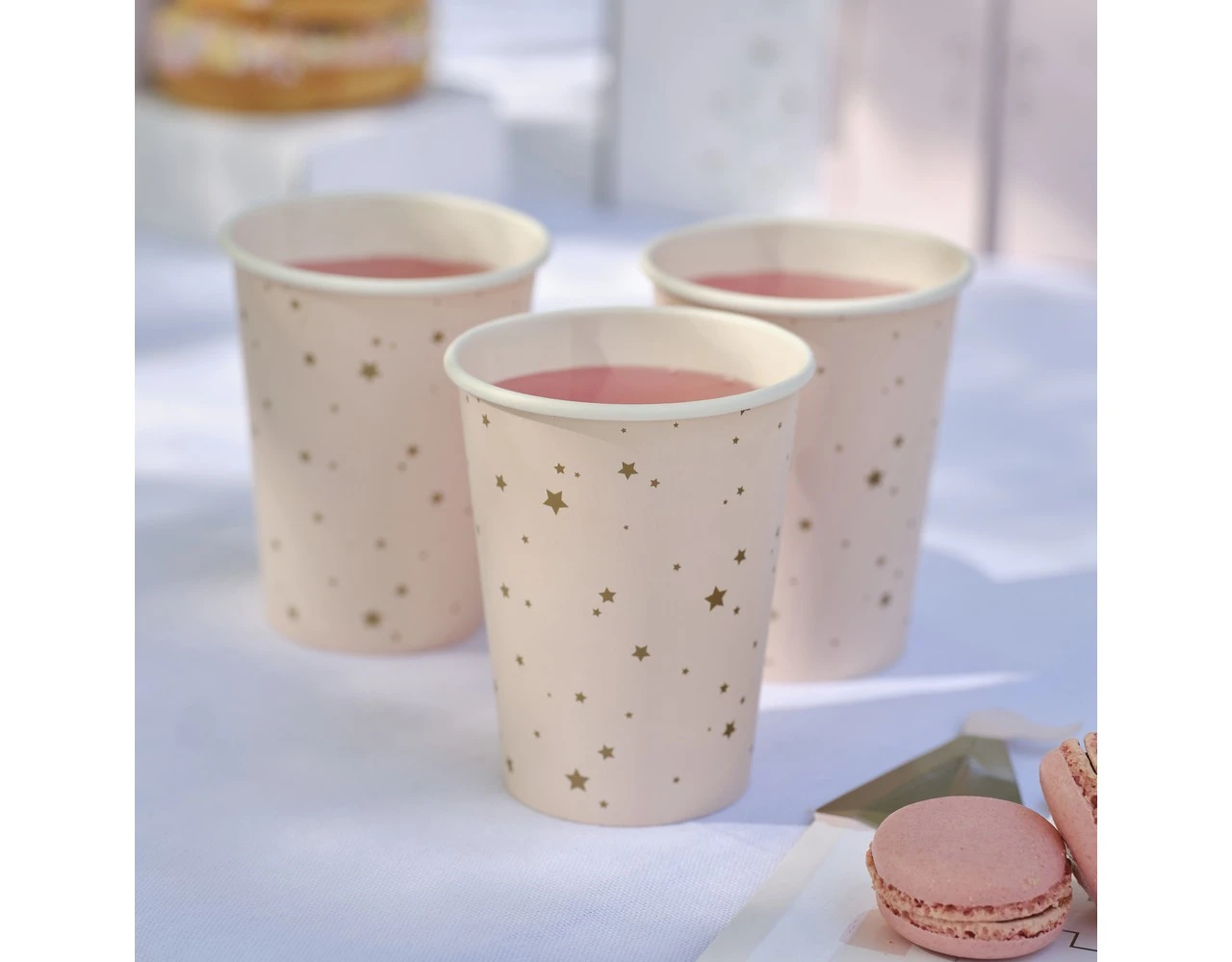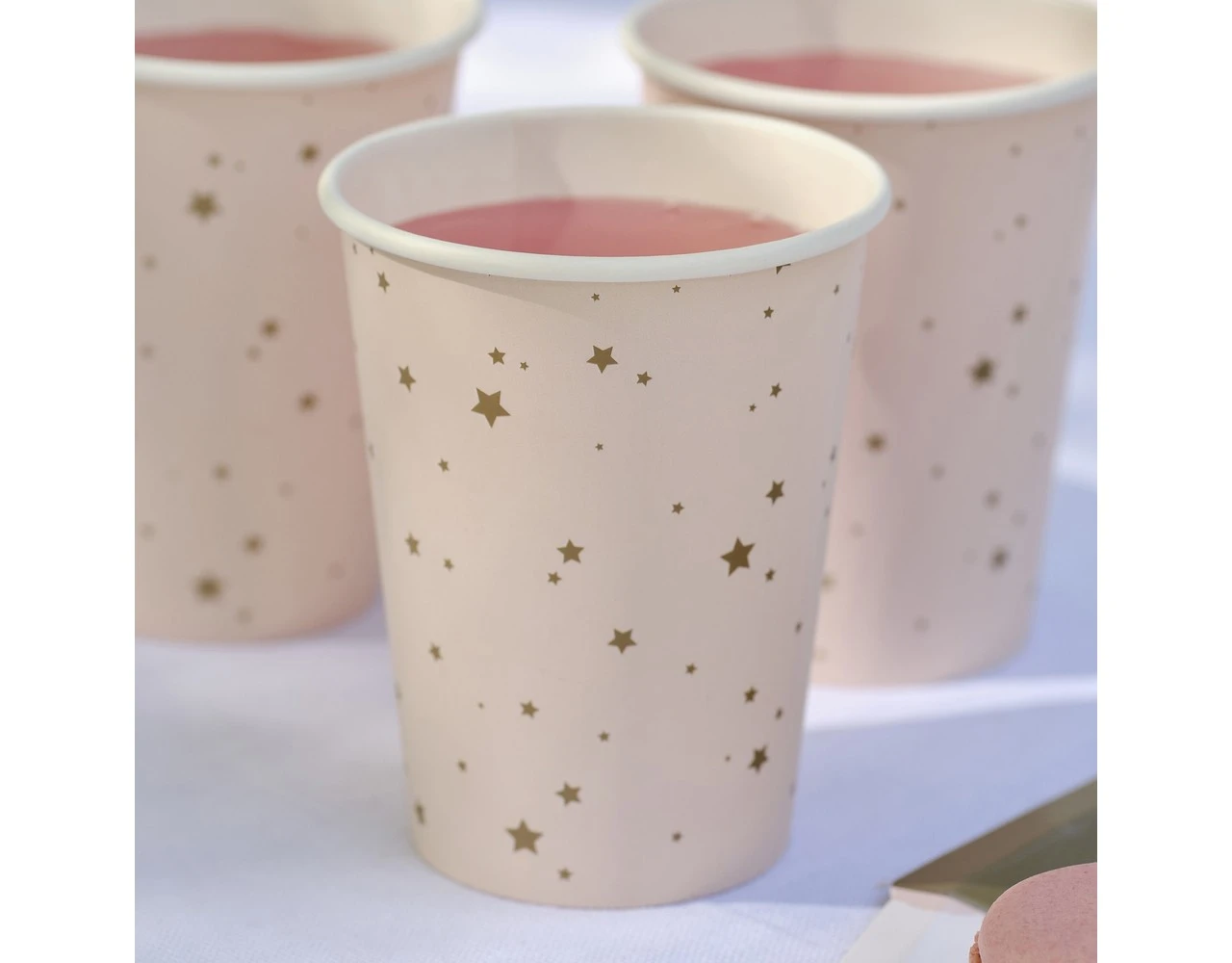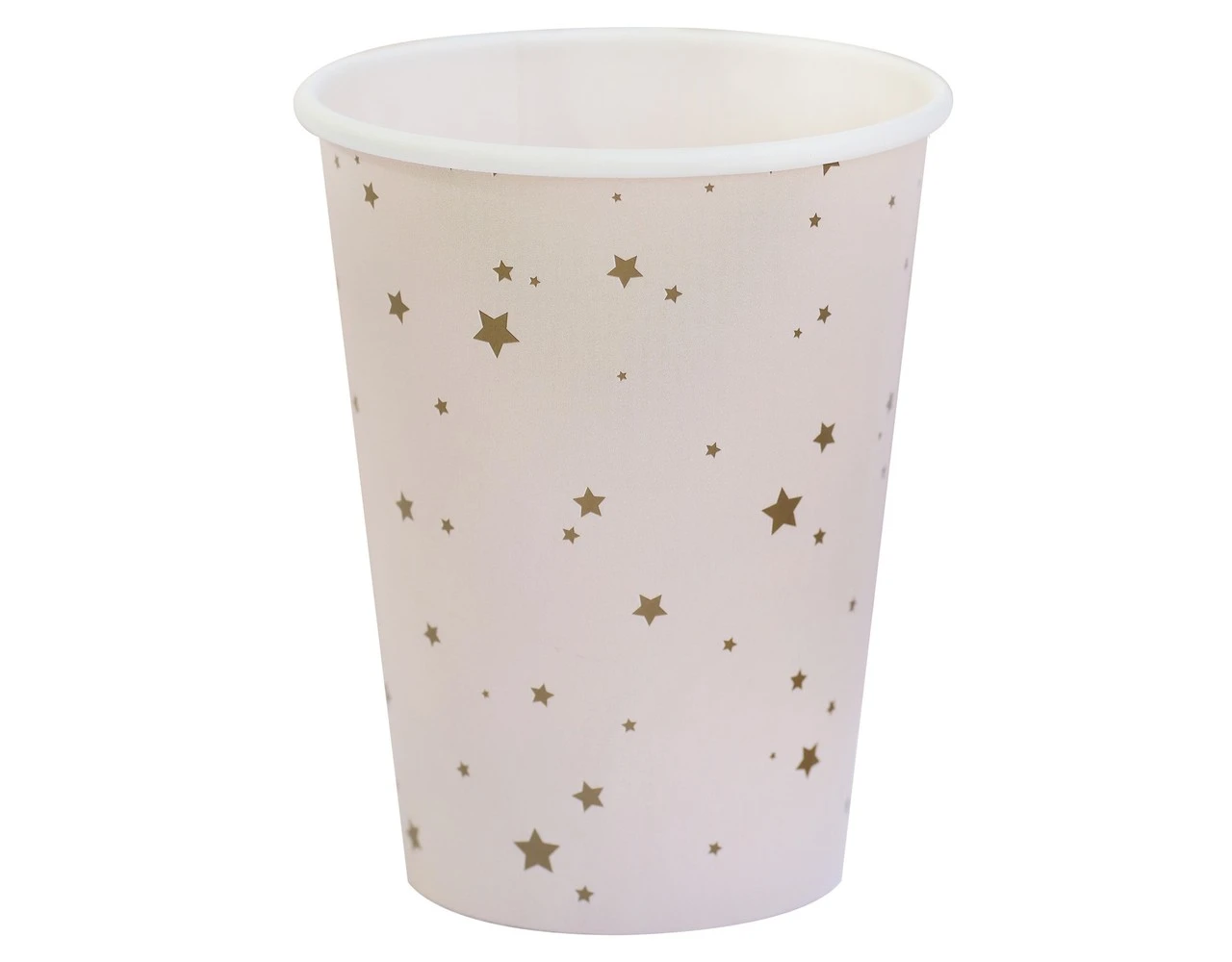 Laat kleine gasten genieten van deze magische papieren bekers met roze en gouden sterren.