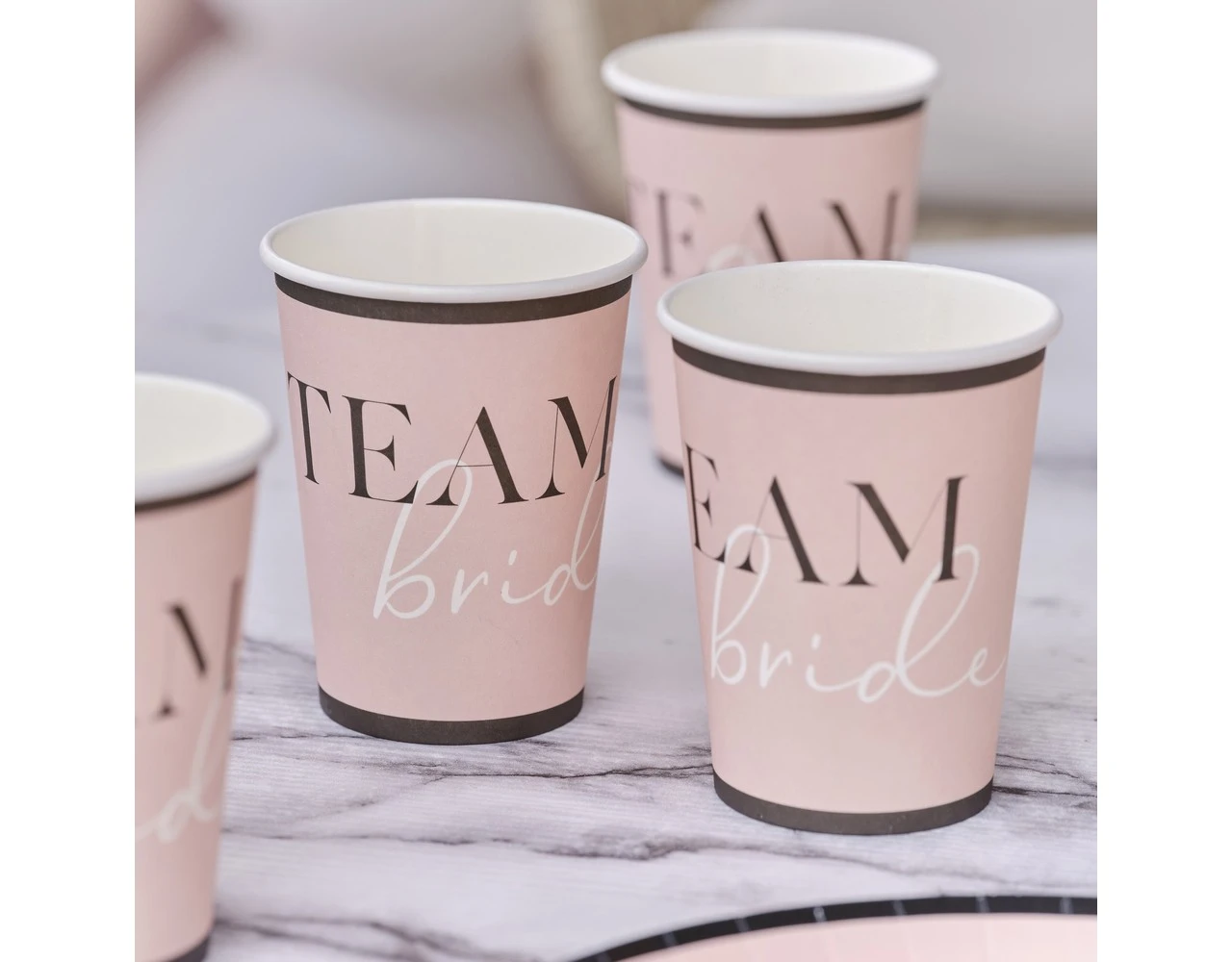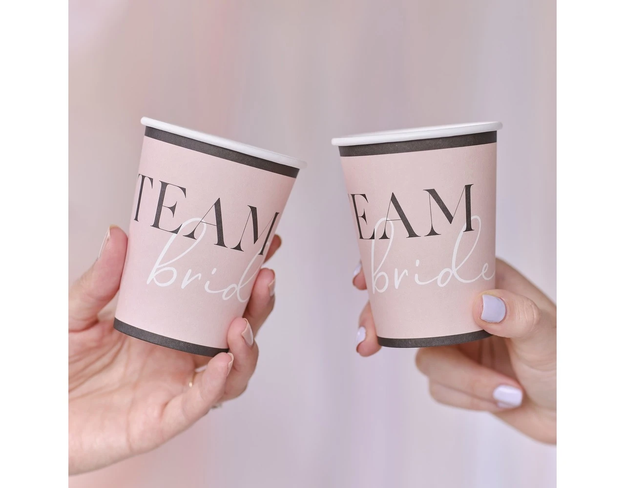 Creëer een stijlvol vrijgezellenfeest met deze Team Bride papieren bekers.