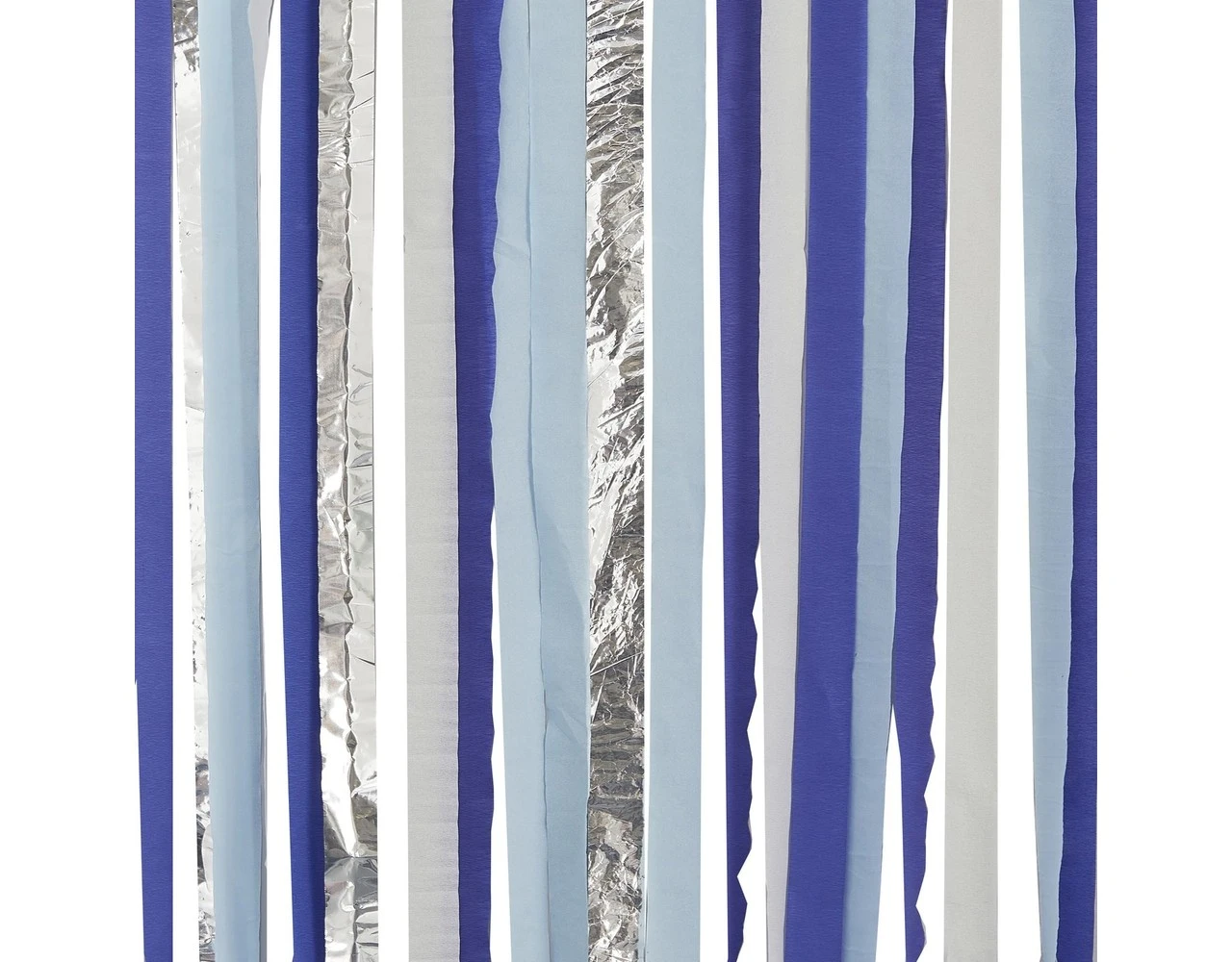 Elke verpakking bevat: 4x 10 meter pastelblauw, 2x 10 meter crème, 4x 10 meter marineblauw, 10 meter x zilveren slingers en 1,5 meter doorzichtig touw voor eenvoudige montage.