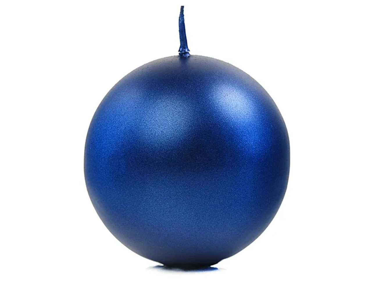 Kaarsenbol, metallic, marineblauw, diameter 8 centimeter. Brandduur van 1 stuk ca. 20 uur.