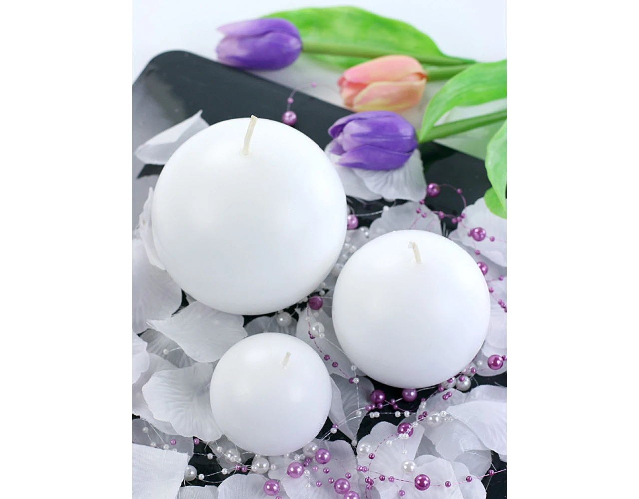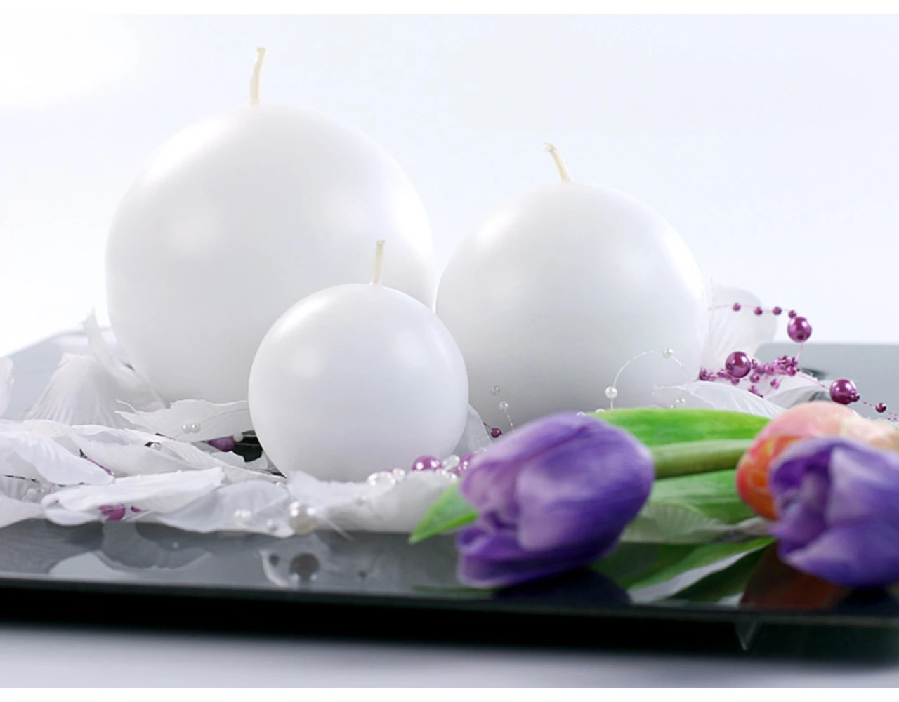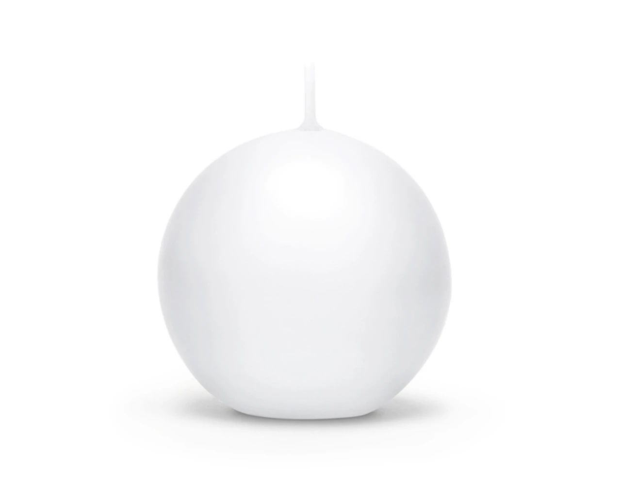 Kaarsenbol, mat, wit, diameter 8 centimeter. Brandduur van 1 stuk ca. 20 uur.