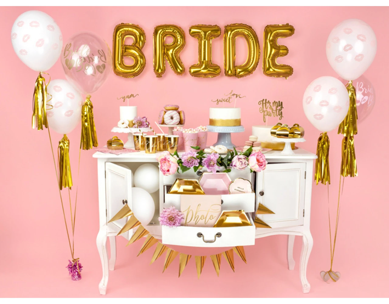 Sterke ballonnen, Crystal Clear met roze dubbelzijdige opdruk Bride to be, diameter 30 cm.