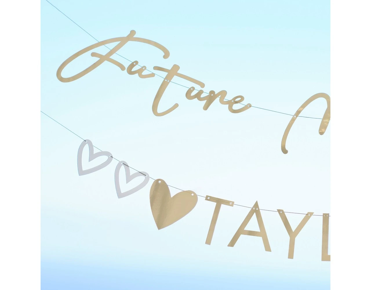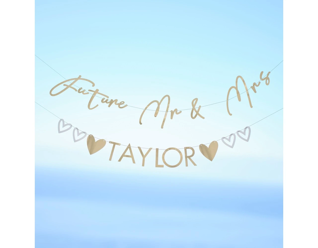 Versier je verlovingsfeest met deze aanpasbare Mr & Mrs-slinger met je nieuwe gezamenlijke achternaam!