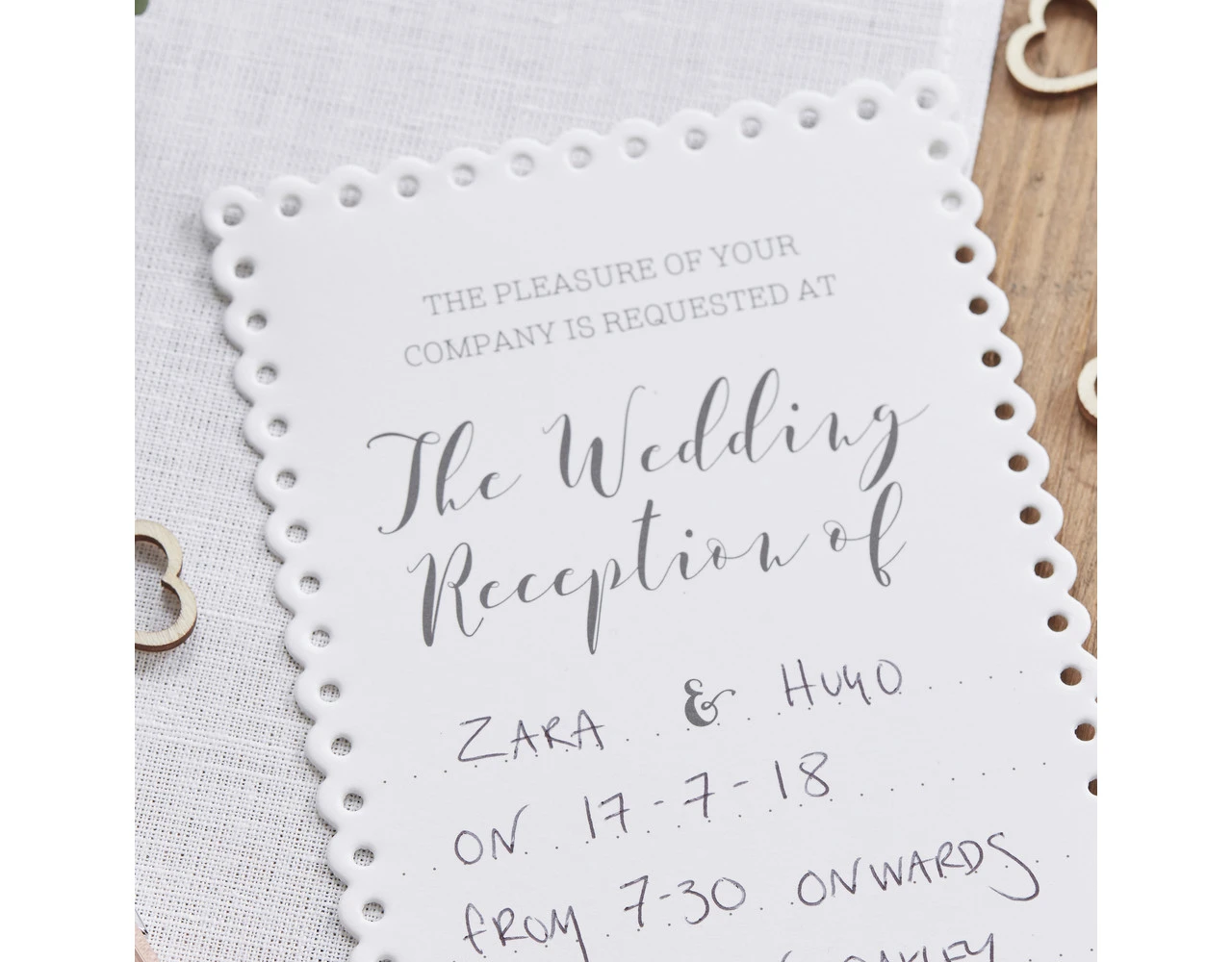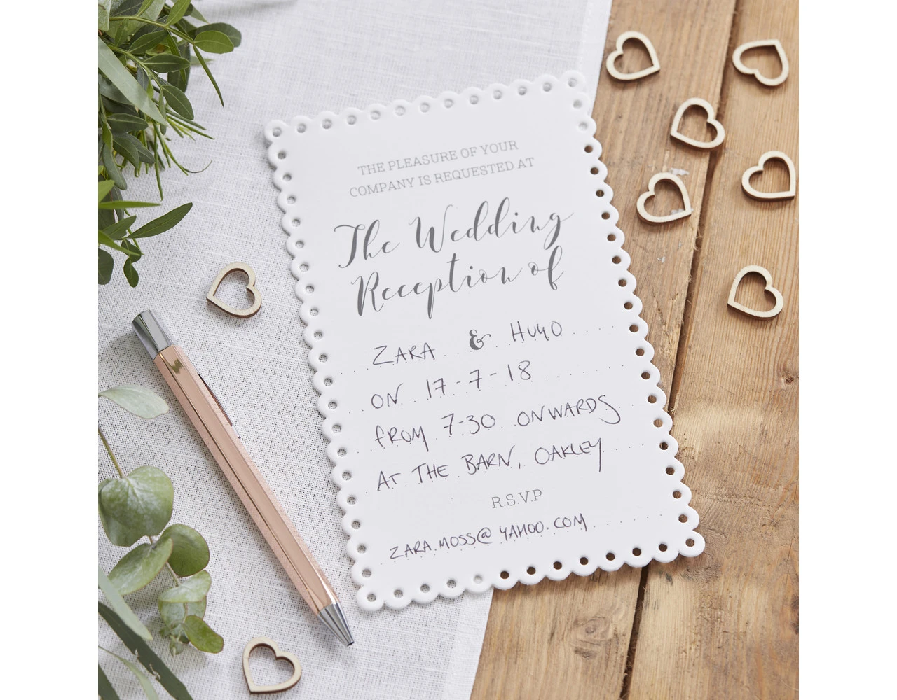 Elke uitnodiging heeft een lege ruimte die u kunt personaliseren met belangrijke informatie voor uw gasten, zoals: u en uw partnersnamen, locatie, data en RSVP. Uitnodigingen worden compleet geleverd met enveloppen, perfect om naar al je dierbaren te sturen.