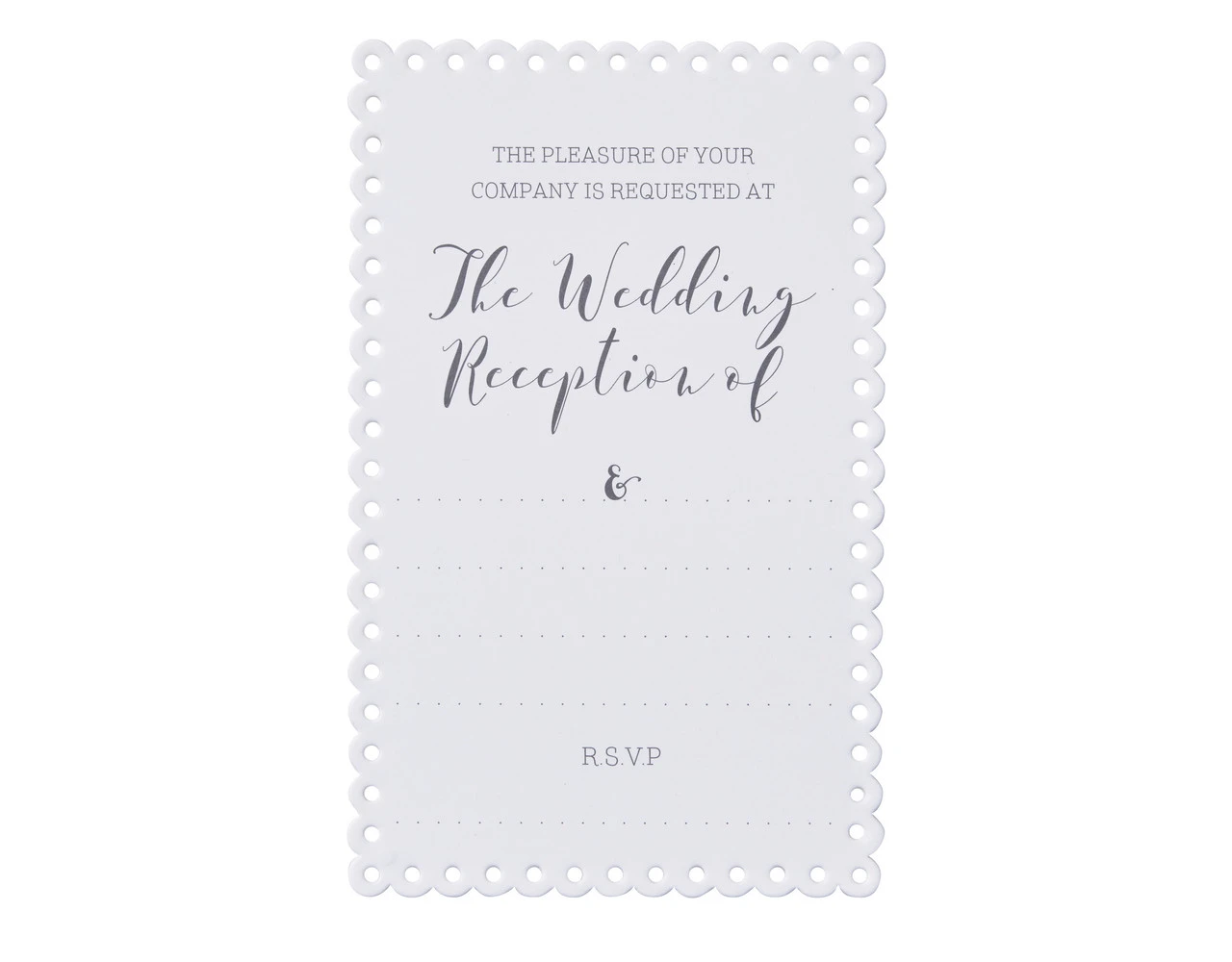 Nodig je vrienden en familie uit voor je huwelijksreceptie met deze prachtige uitnodigingen. Deze frisse witte uitnodigingen zijn prachtig verijdeld met een trendy ontwerp dat zeker bij iedereen in de smaak zal vallen.