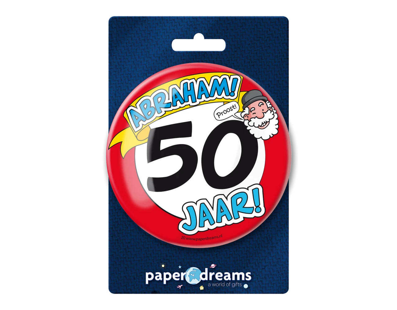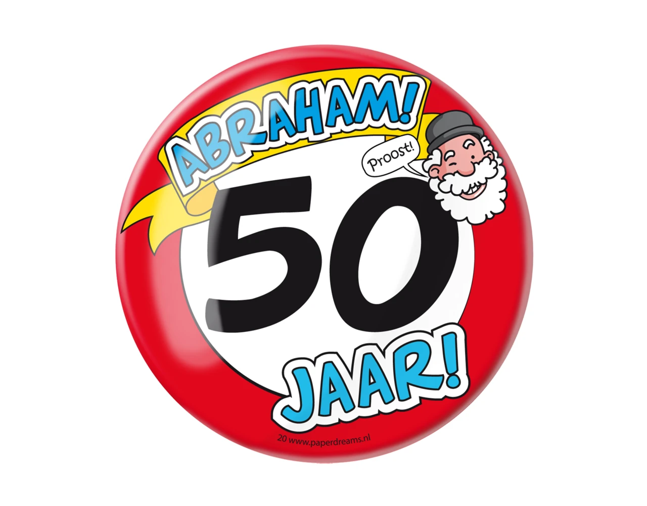Verpakkingsinhoud: Button 50 jaar Abraham Verkeersbord 10,2cm