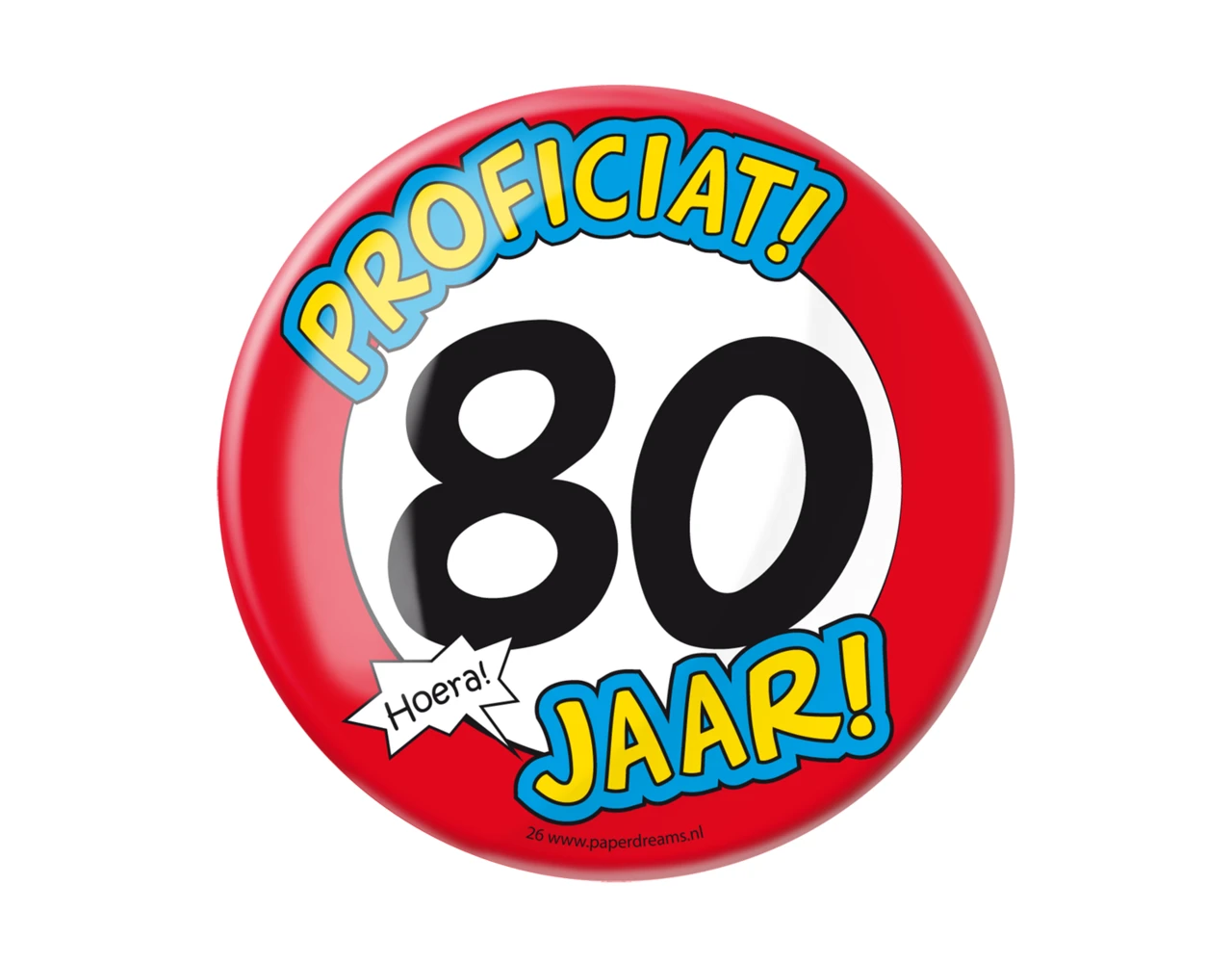 Verpakkingsinhoud: Button 80 jaar Verkeersbord 10,2cm