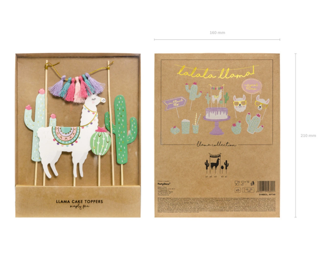Taart toppers Llama, mix van kleuren, hoogte van ca. 9 tot ca. 20 cm.