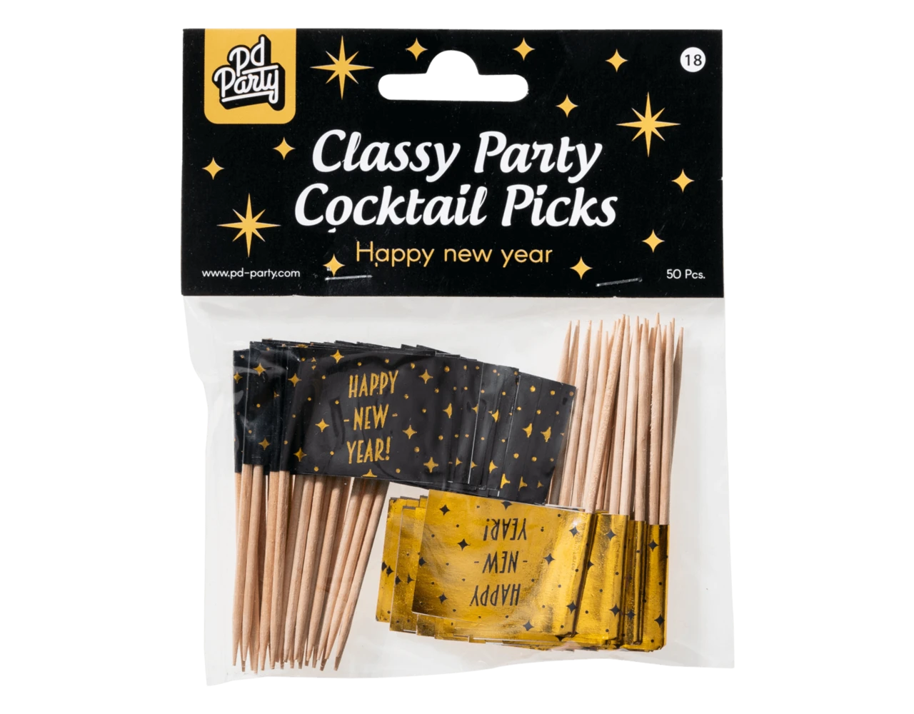 De Classy party cocktail picks zijn de ideale versiering voor in een hapje op bijvoorbeeld een verjaardag. Door de kleur zwart goud en het ‘classy’ design vallen deze cocktail prikkers dan ook extra goed op!