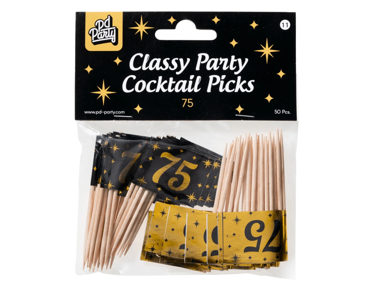 De Classy party cocktail picks zijn de ideale versiering voor in een hapje op bijvoorbeeld een verjaardag. Door de kleur zwart goud en het ‘classy’ design vallen deze cocktail prikkers dan ook extra goed op!