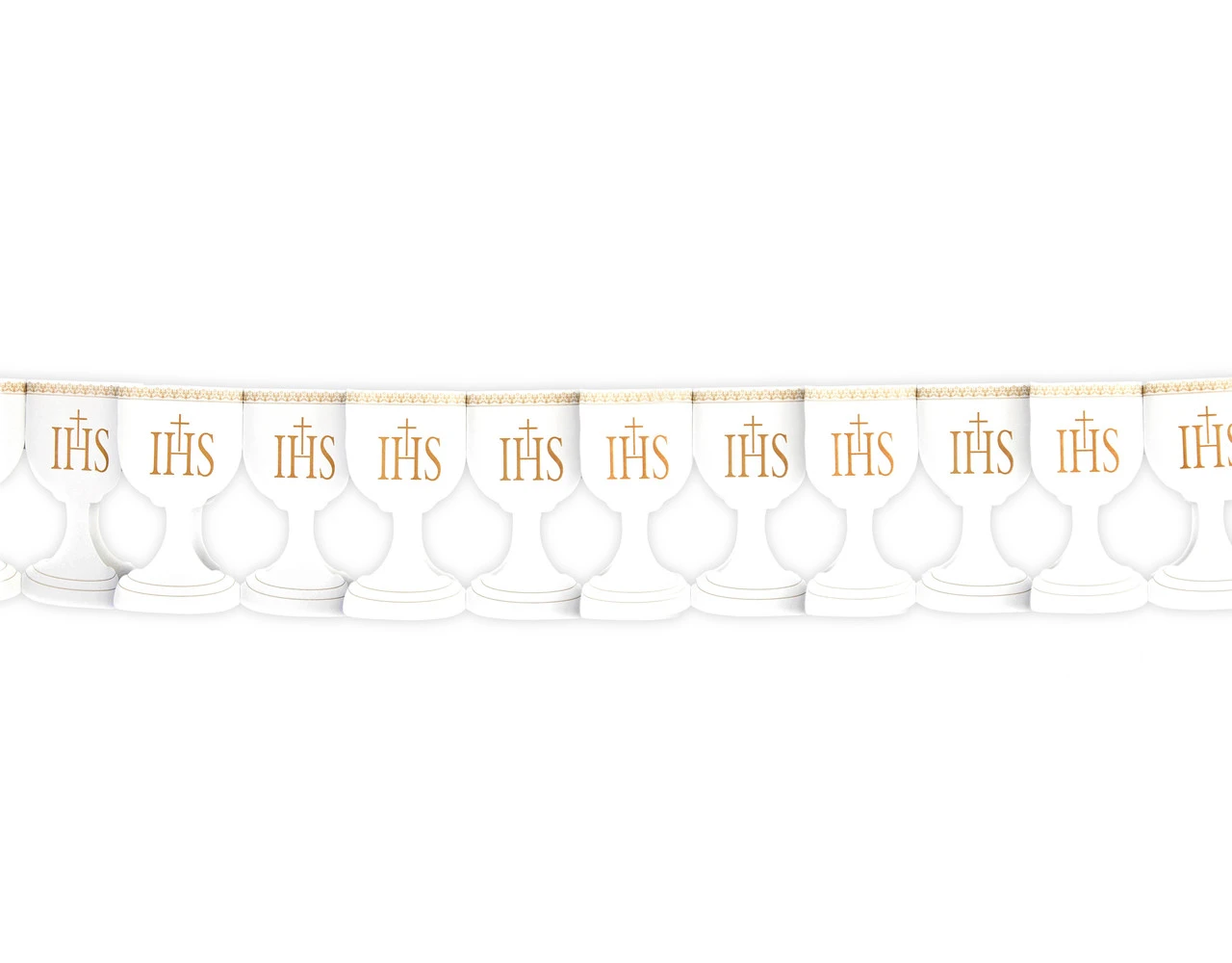 Inhoud: Papier guirlande IHS kelk, wit, afmetingen 17 cm x 3 meter.