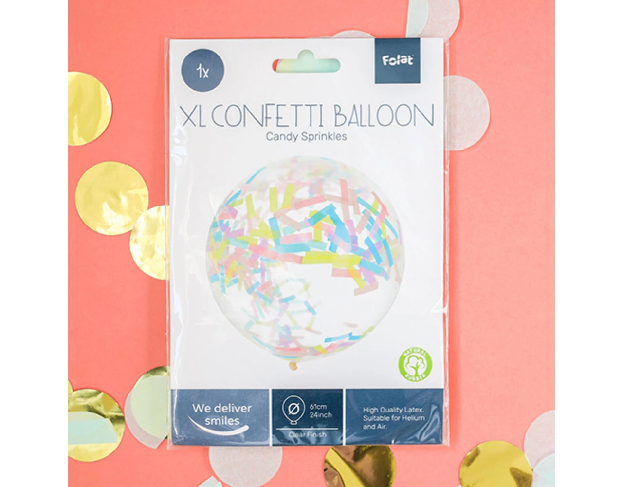 Ballon XL met Confetti Candy Pastel – 61 cm. Inhoud: 1 latex ballon. Kleur: Meerkleurig. Bijvoorbeeld te gebruiken tijdens de volgende feestgelegenheid/feestgelegenheden: Verjaardag en Kinderfeestje. De ballon is 24 inch/61 cm. De confetti is rechthoekig en er zit 6 gram confetti in een ballon. Het artikel is gemaakt van latex. De confetti is gemaakt van papier.