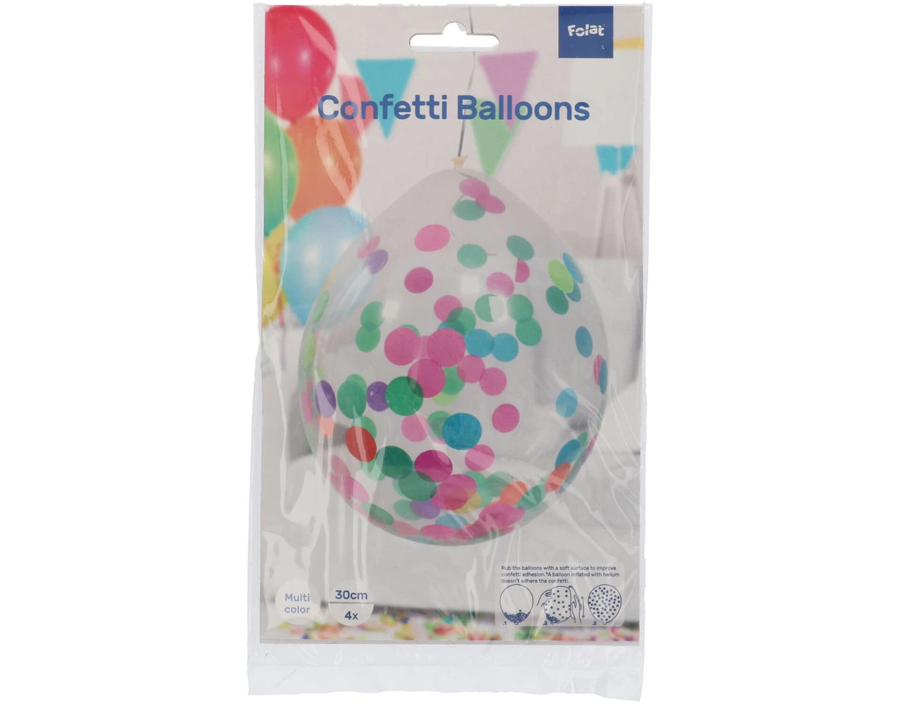Ballonnen met Meerkleurige Confetti 30 cm – 4 stuks. Inhoud: 4 latex ballonnen. Bijvoorbeeld te gebruiken tijdens de volgende feestgelegenheid/feestgelegenheden: verjaardag, themafeest, kinderfeestje. Elke ballon is 12 inch/30 cm. Het artikel is gemaakt van latex.