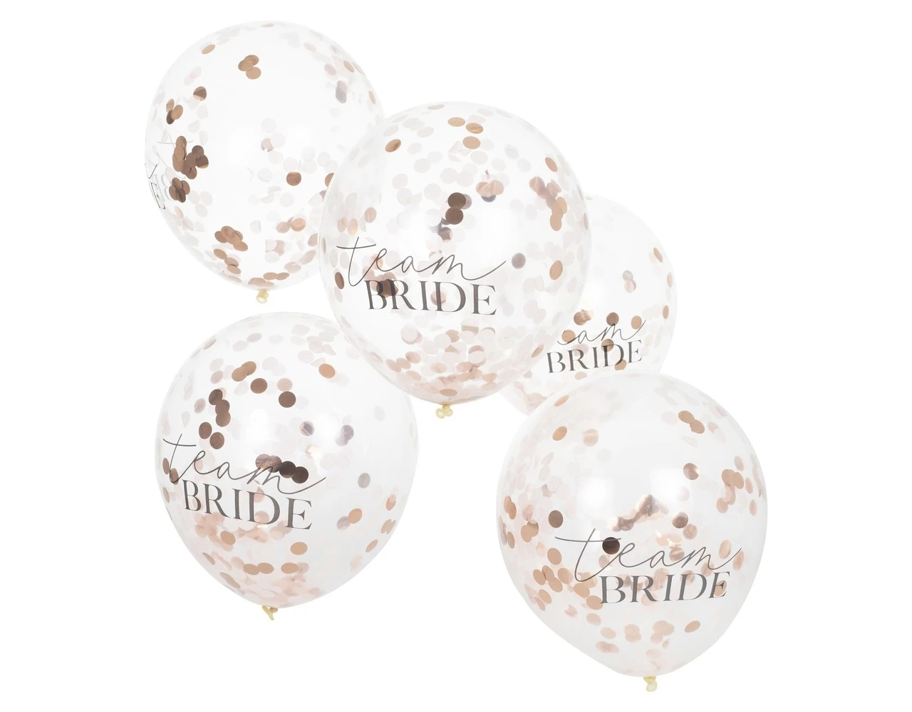 Een leuke aanvulling op elk vrijgezellenfeest, deze confettiballonnen zullen elke locatie opfleuren en zullen geliefd zijn bij iedereen met de tekst van de teambruid. De mooie blozende roze en roségouden confetti voegen een vleugje kleur toe en fleuren elk vrijgezellenfeest op.