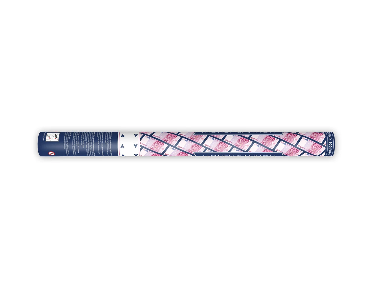 Inhoud: Confetti kanon schieten uit 500 eurobiljetten, lengte 60 centimeter.
