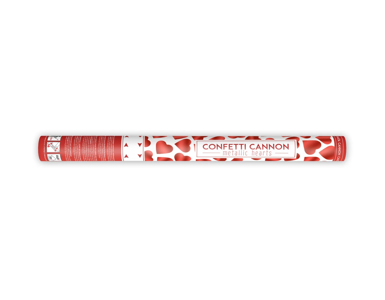 Inhoud: Confetti kanon schieten uit metallic harten, rood, lengte 60 centimiters.