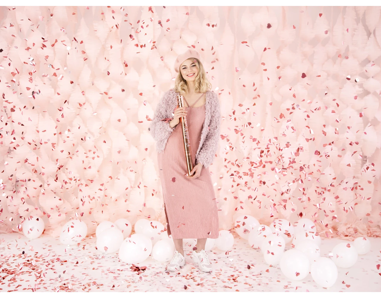 Inhoud: Confetti kanon schieten uit rose gold metallic harten, lengte ong. 60 cm.