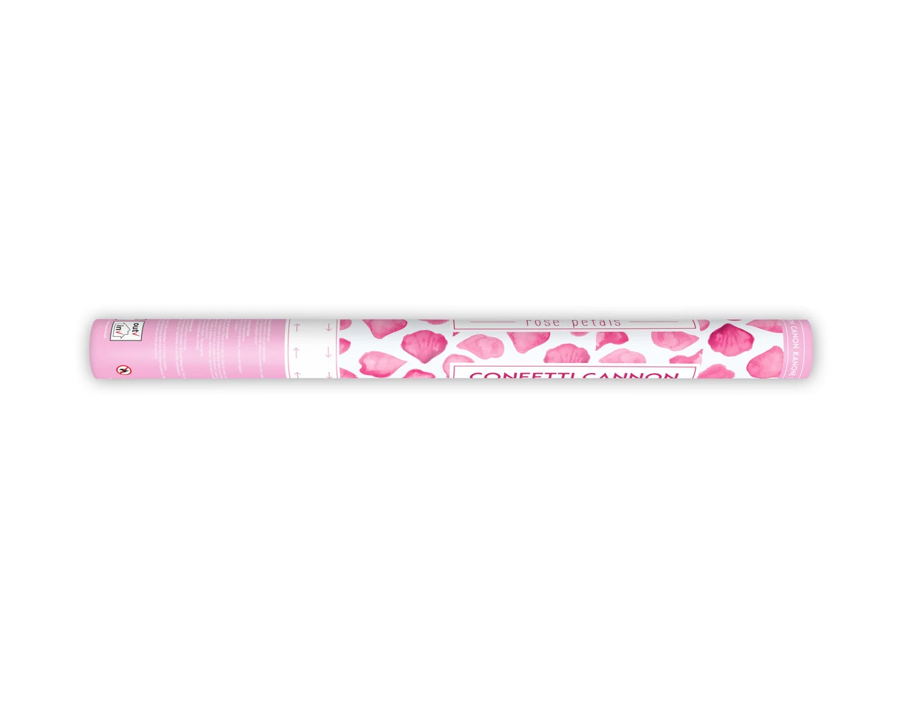 Inhoud: Confetti kanon schieten uit roze kunstmatige rozenblaadjes, lengte 60 centimiters.