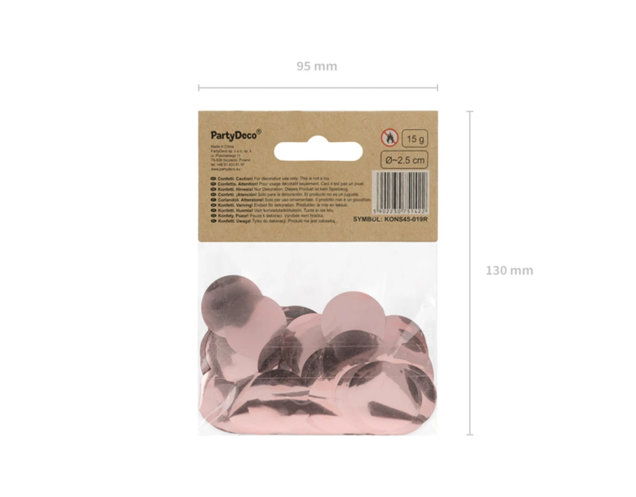 Confetti cirkels gemaakt van rosŽ goud folie. Diameter ca. 2,5 cm. Verpakking bevat ca. 15g.