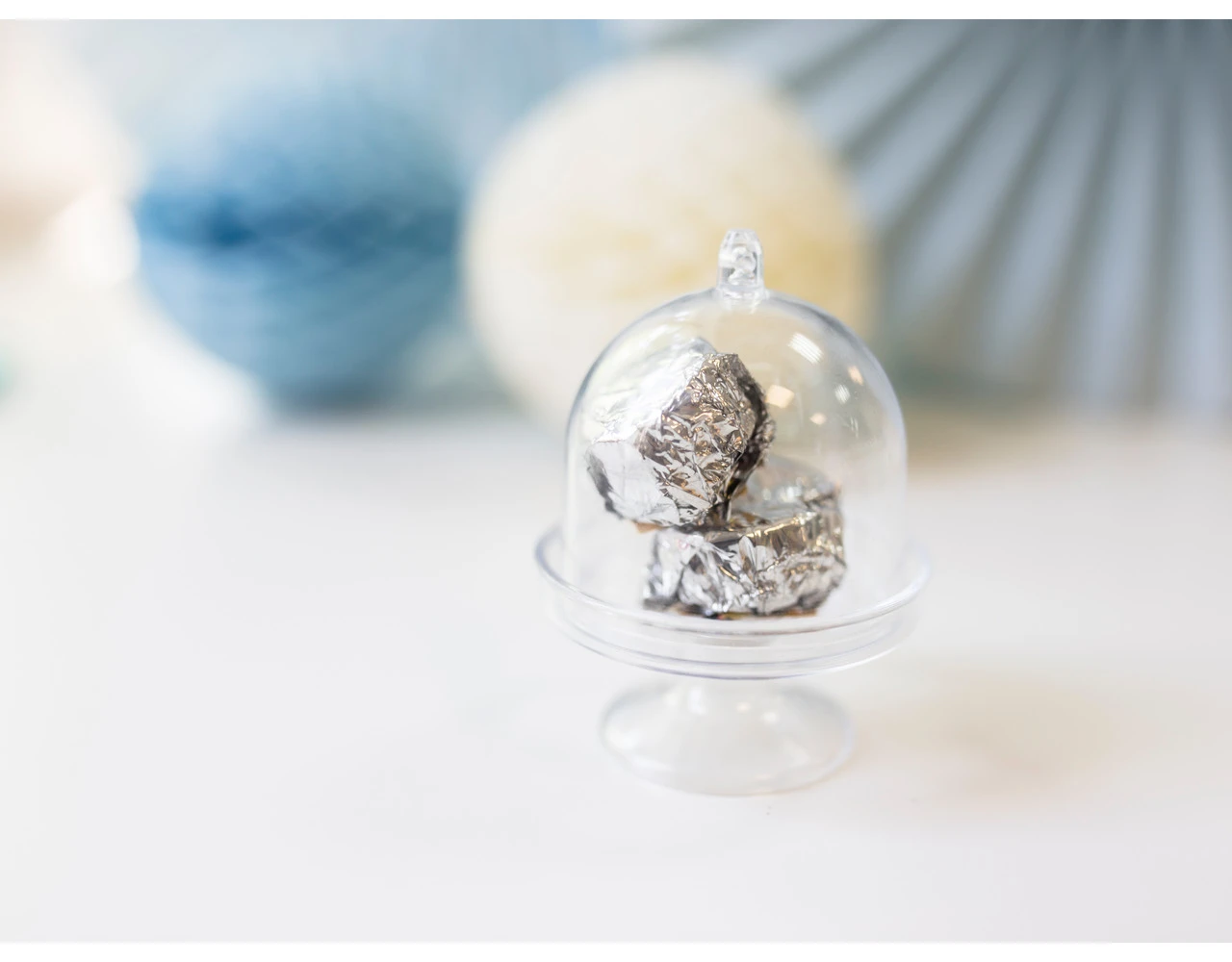 Inhoud: Dozen Cake Stand, gemaakt van kleurloos materiaal, ideaal voor de gasten geschenken, afm. 5,5 x 7,5 cm. (1 PKT / 3 st.)