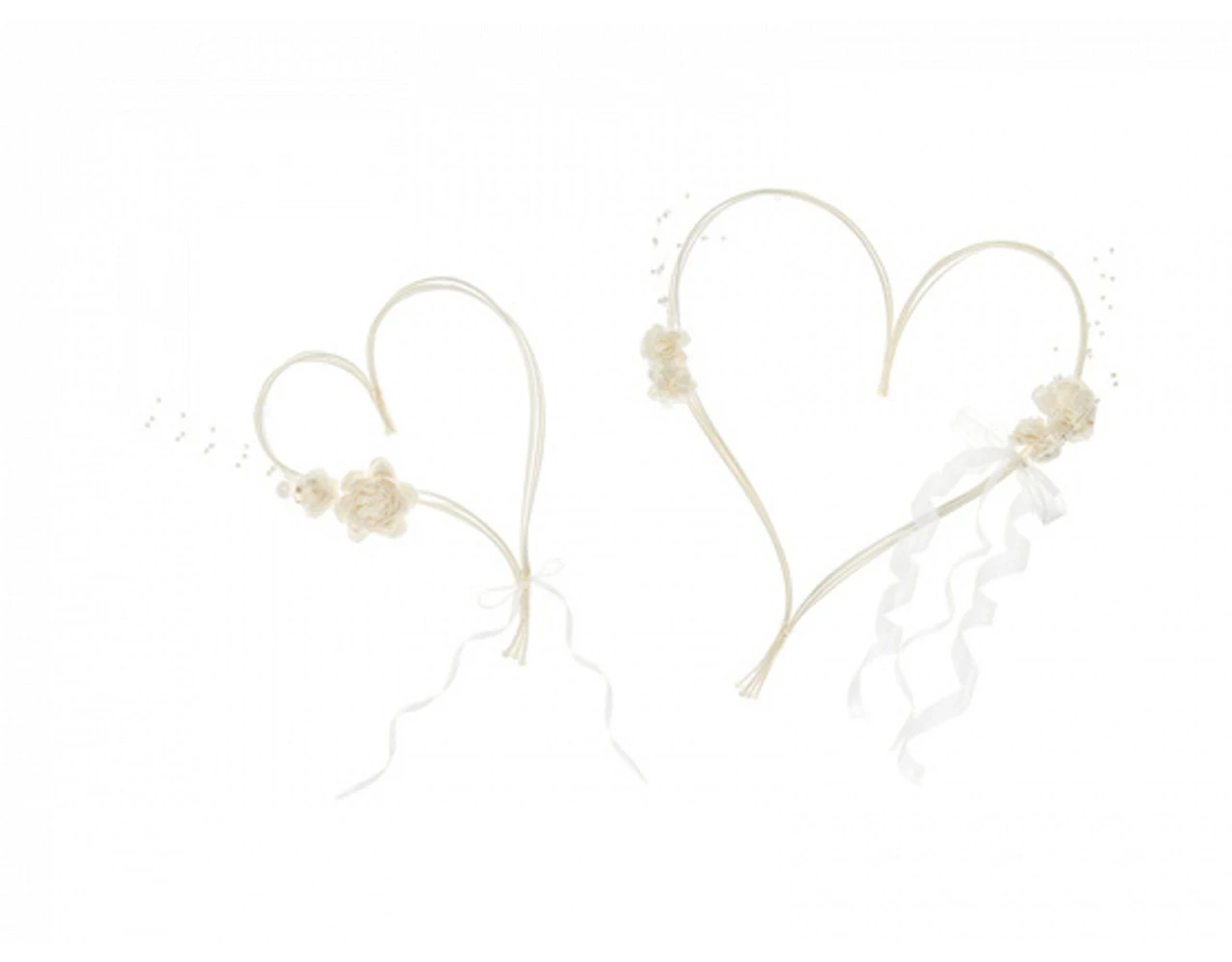 Rotan hartjes met crmekleurige gedroogde ruiker en zuignapjes. De set bevat harten in de maten: 19 centimeter en 30 centimeter.