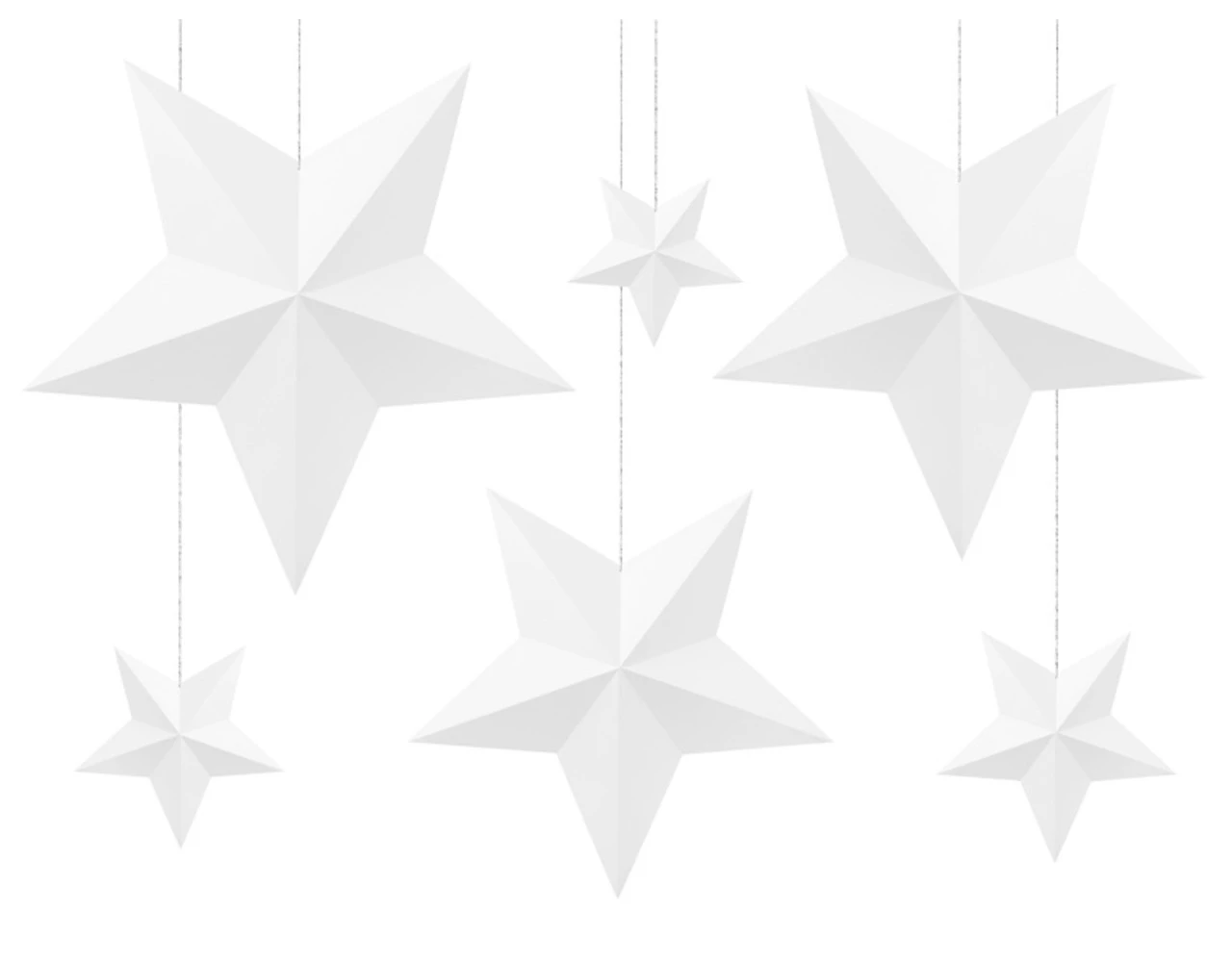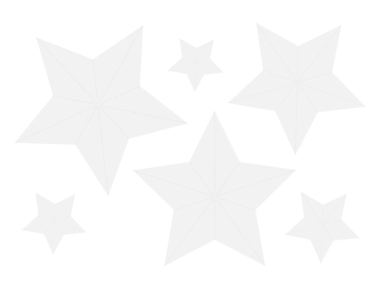 Decoratie Sterren, wit, doe het zelf, set bevat sterren in de maten ca.: 37 x 35 cm, 33 x 31 cm, 28,5 x 27,5 cm, 16 x 15 cm, 14 x 13,5 cm, 12 x 11,5 cm en zilverkleurig bindtouw.