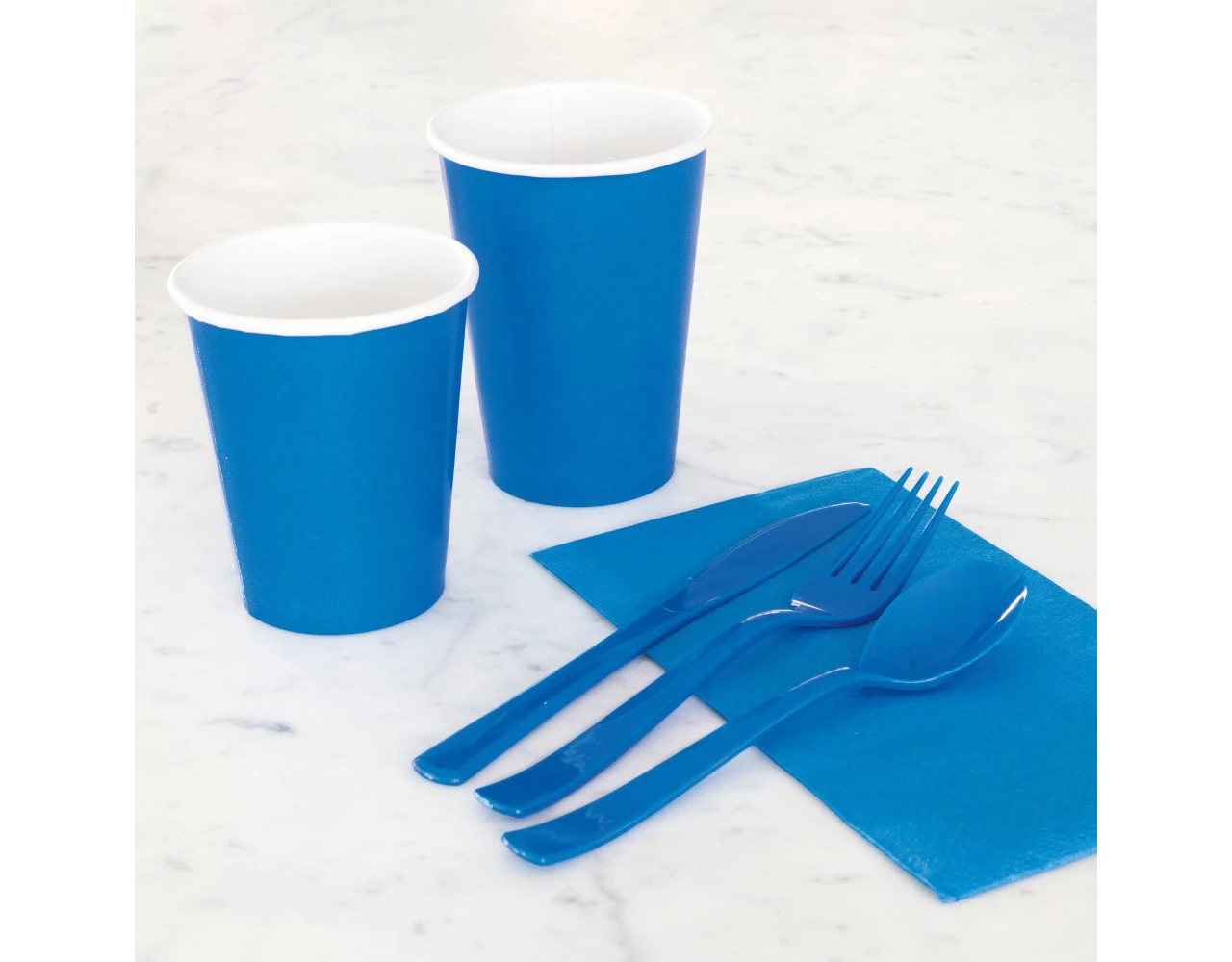 Verpakkingsinhoud: Donkerblauw Bestek Plastic 18 delig